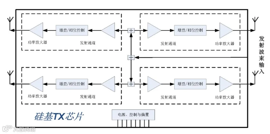 目前,我司预研的毫米波硅基芯片将集成功率放大器、数字移相器、数字衰减器、驱动放大器、低噪声放大器、滤波器和功分网络等,收发芯片能够支持相控阵扫描的全部功能,可以与毫米波平面阵列天线组成相控阵天线射频前端。