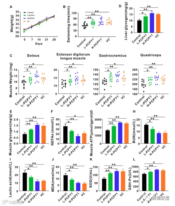 以上研究表明,多花黄精均一多糖PCPY-1可以作为一种新型的抗疲劳食品有效成分进行开发。