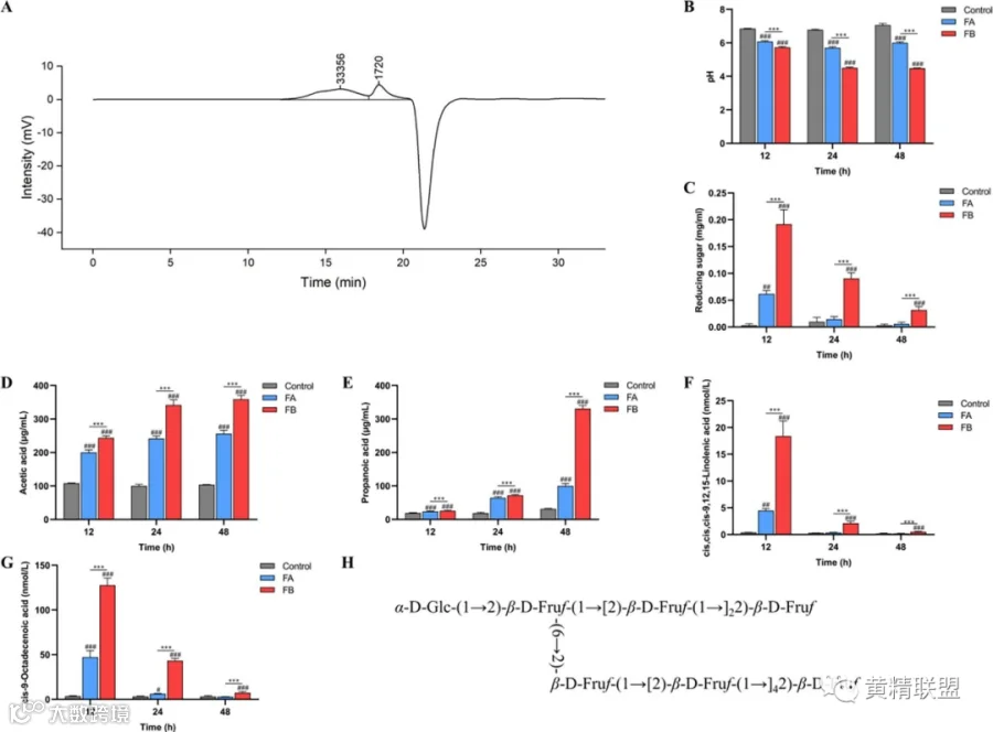 随着进一步的分离和纯化,作者首次从蒸黄精中分离出具有一个葡萄糖和十个果糖结构的小分子多糖(P1),并发现其对短链脂肪酸和长链脂肪酸的产生有显著影响,该多糖的作用机制还需要进一步研究。