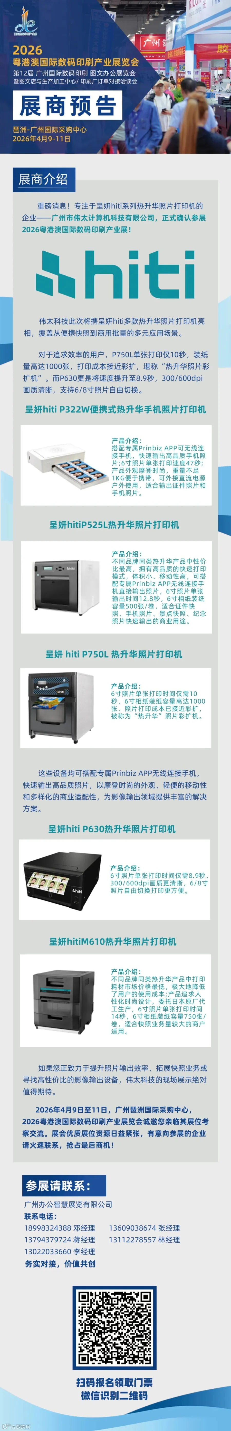 【展商播报】广州市伟太计算机科技有限公司--专注于呈妍hiti系列热升华照片打印机的企业,正式确认参展!