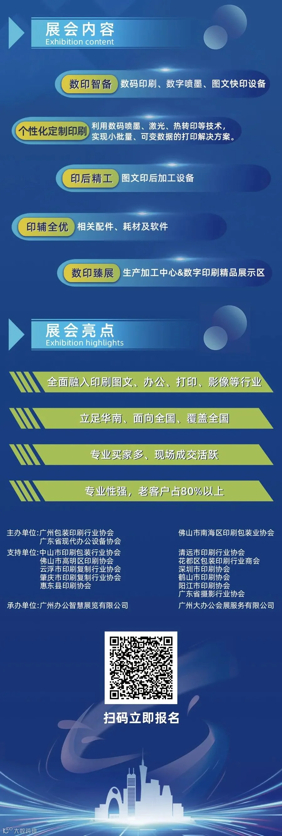 展览会将全面展示数码印刷设备、图文快印设备、智能印后加工、创新耗材软件、包装印刷成品及文创应用等新产品、新技术;大会期间举办“行业发展高峰论坛”与“技术研讨会”,并同期举办精准商贸配对活动,在华南地区打造一个真正从“创意设计”到“终端产品”一站式产业链闭环的行业盛会。
