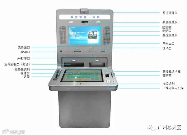 近日,广州市黄埔区推出政务智能一体机2.0版本,升级后的新型政务智能一体机已于2019年12月6日部署在广州芯大厦园区,具体位置为大厦首层北大堂。政务智能一体机在芯大厦的投放,是芯大厦园区运营服务企业广州乐飞物业有限公司打造园区综合运营服务的又一新举措,旨在进一步提升企业服务能力,为园区职工及周边群众提供24小时不打烊的政务和便民服务,方便市民就近办事。