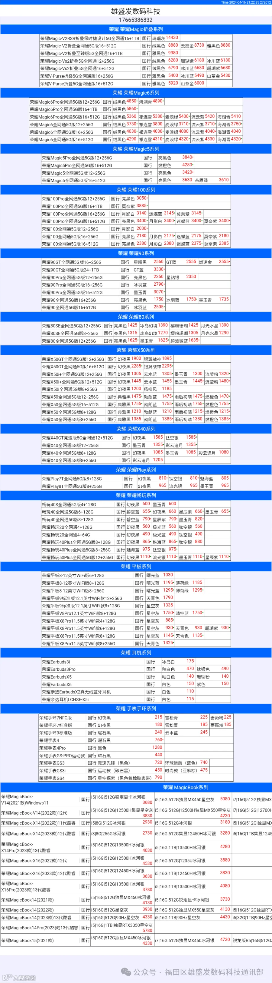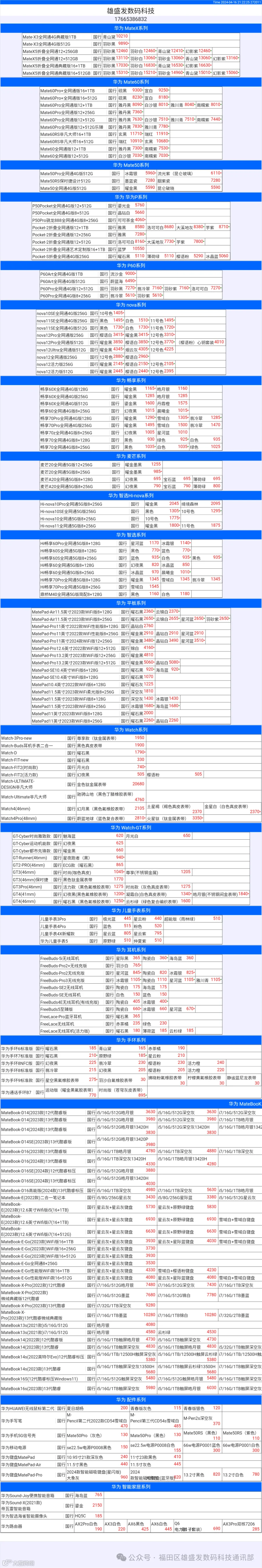 新机报价【2024年4月16日】华为   荣耀 报价 芯烨微 电子科技