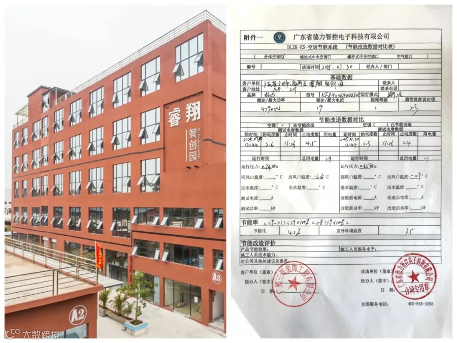 广州睿翔智创园,是一个集办公、配套服务于一体的产业园区。2025年7月,德力智控为广州睿翔智创园现场节能改造打样,实测制冷节能率42%,证明了园区类建筑的节能空间同样可观。
