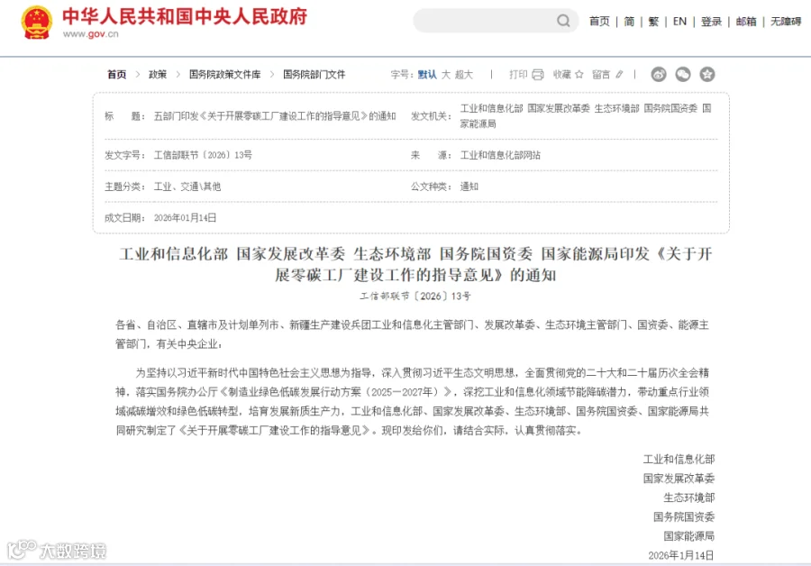 中观路径:工业和信息化部等五部门于2026年初联合印发《关于开展零碳工厂建设工作的指导意见》,为制造业指明“过程脱碳”的具体路径,要求企业从技术改造和能效提升入手。