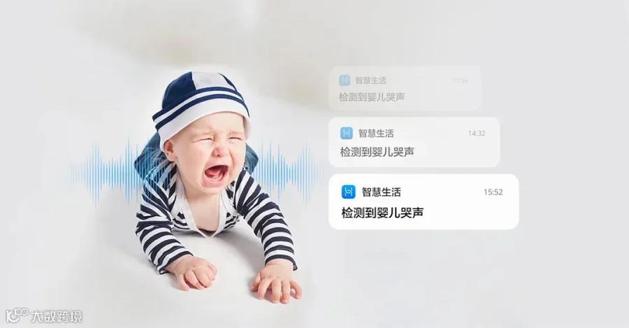 AI哭声侦测:AI声音识别算法,精准识别宝宝哭声,及时记录并推送消息告警,宝宝守护更及时。