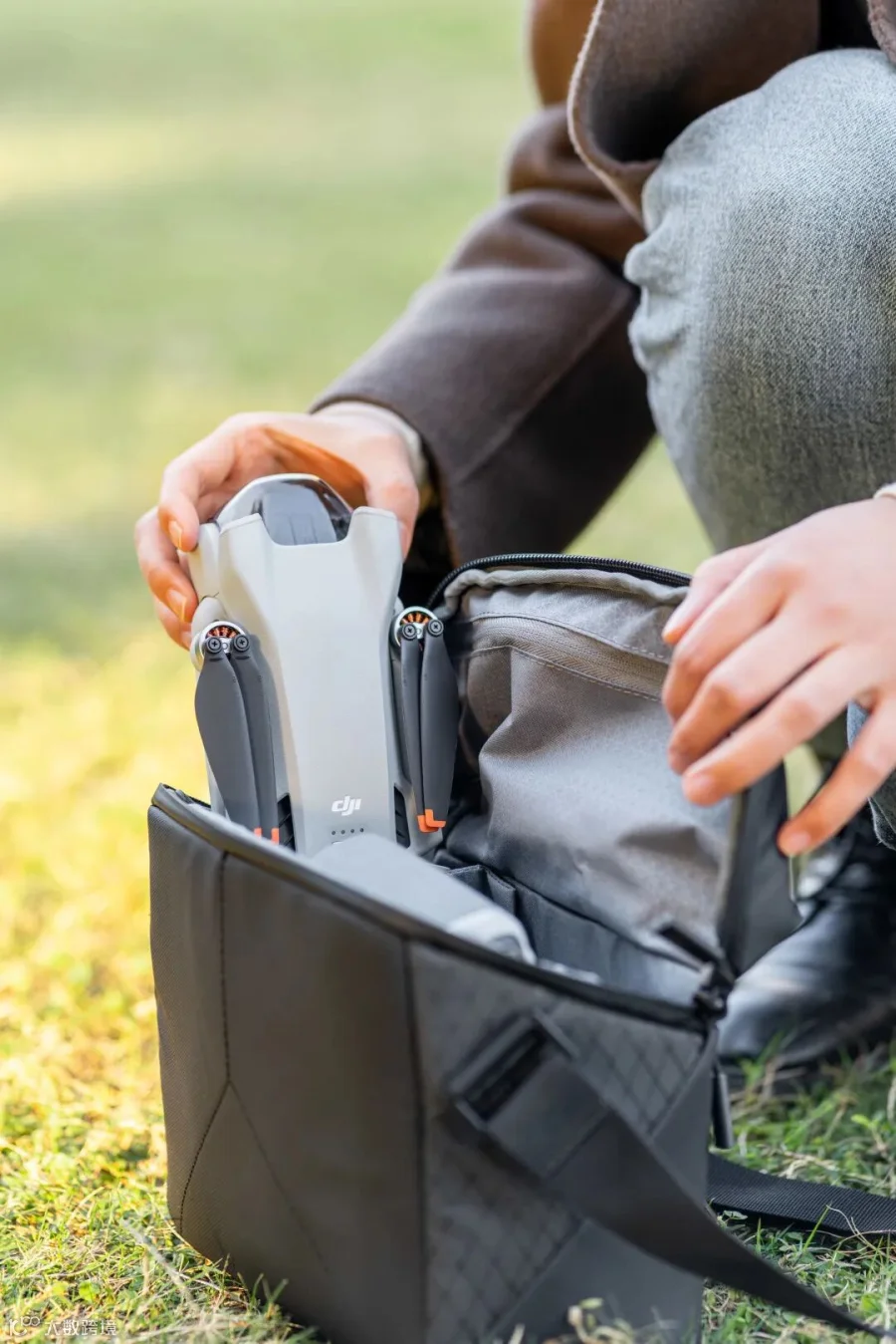 如果你选择了畅飞套装,那么你还会收获一个便携收纳包,一个电池管家。套装内的东西都是直接放在收纳包里,到手就是一种 READY 状态,很友好,同样非常符合 Mini 让大家更好飞的理念。延续下来的电池管家就不多说了,绝对是个优秀的的设计,携带收纳、充电都方便,还能当充电宝应急。