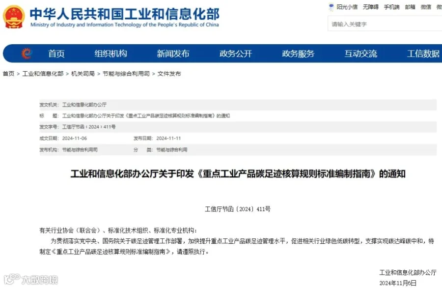 11月11日,工信部发布了“碳足迹”新通知,印发实施《重点工业产品碳足迹核算规则标准编制指南》(以下简称:编制指南)。