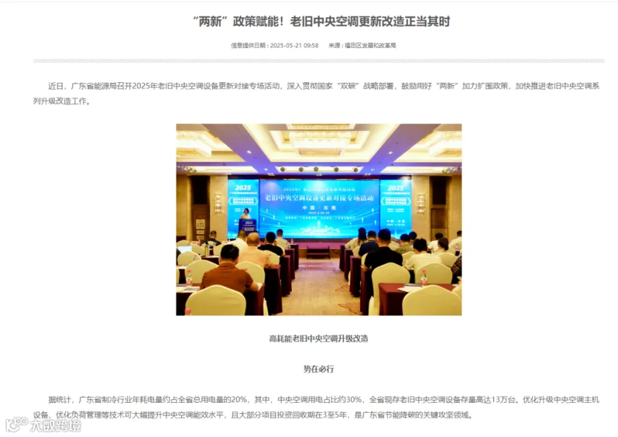 一方面,在“双碳”战略下,中央与地方政策密集出台,正以前所未有的力度撬动市场。例如,设备更新贴息、专项补贴等政策,直接降低了企业的改造成本。根据广东省能源局在2025年专项活动中披露的数据显示,全省老旧中央空调存量已超13万台。这为市场提供了明确、量大的项目来源,政策红利窗口已然打开。