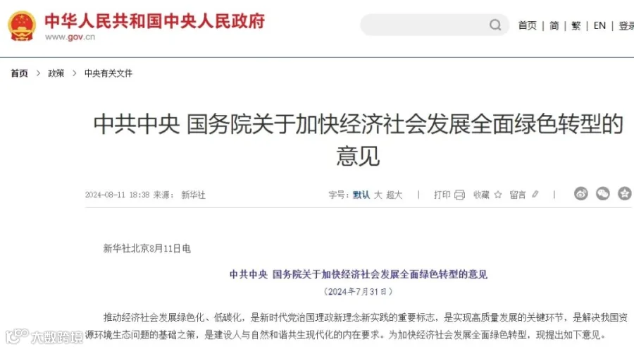 前不久,国务院印发了《关于加快经济社会发展全面绿色转型的意见》(以下简称《意见》)。这是中央层面首次对加快经济社会发展全面绿色转型进行系统部署。