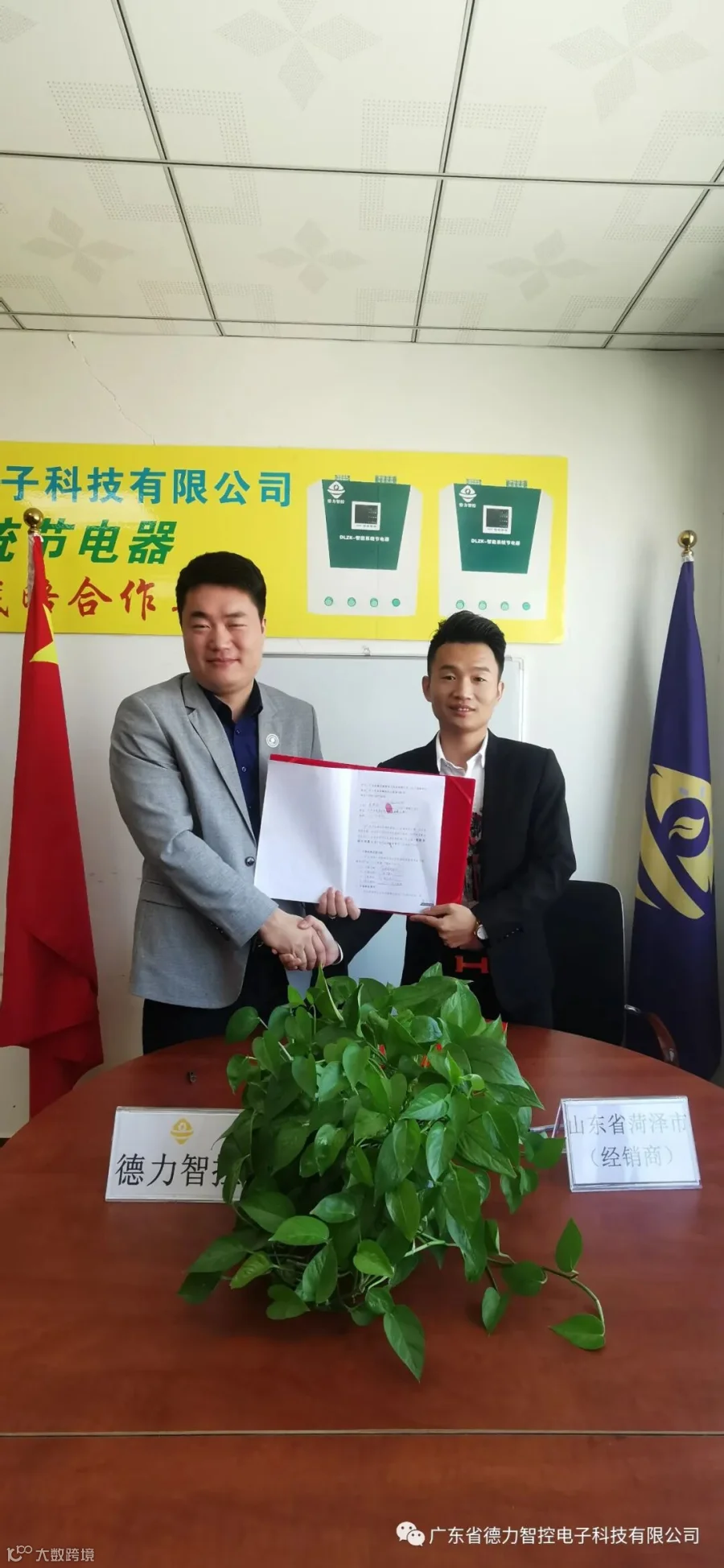 2020年伴随着我司德力智控品牌影响力提升和产品效果的呈现,我司德力智控总公司签约不断,喜讯接踵而至。山东省荷泽市的马总,经过一段时间的双方共同考察,终于与我司德力智控签订了加盟合同。