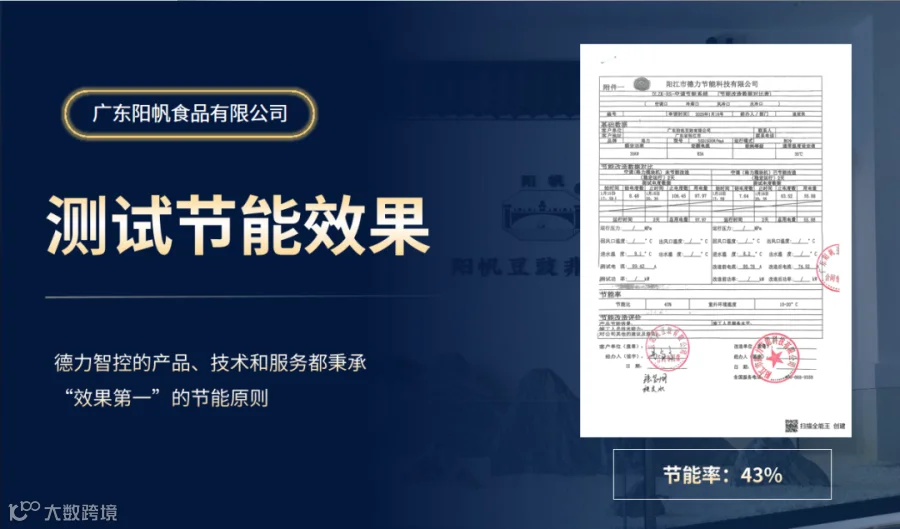整个施工过程高效、专业,节能率稳定,得到了阳帆食品在场人员的高度认可。同时,在全程在场看到实际打样效果后,阳帆食品也选择了与德力智控正式合作,这也为企业的绿色转型,迈出了非常关键的一步。