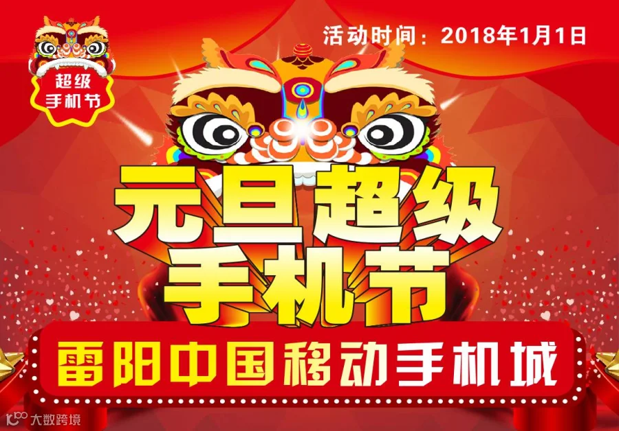 雷阳中国移动手机城2018年1月1日-3日元旦超级手机节邀请全市使用智能手机的用户到店免费领取《智能专属大礼包》