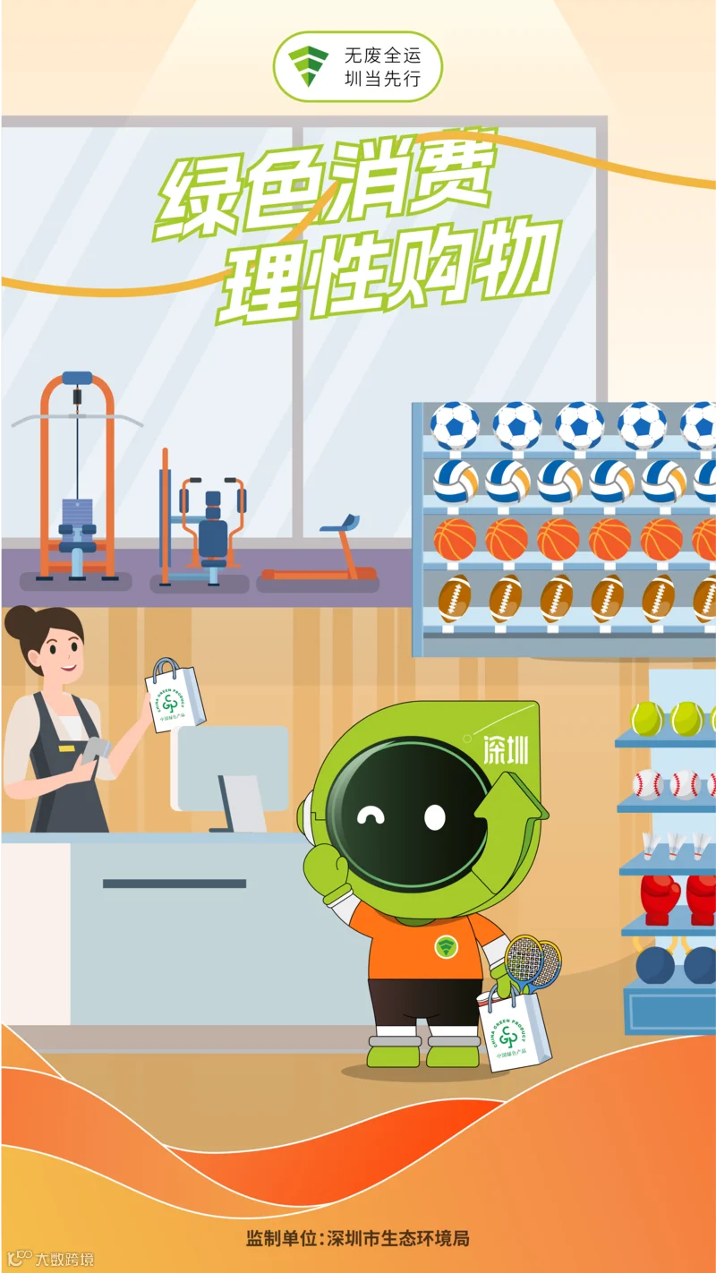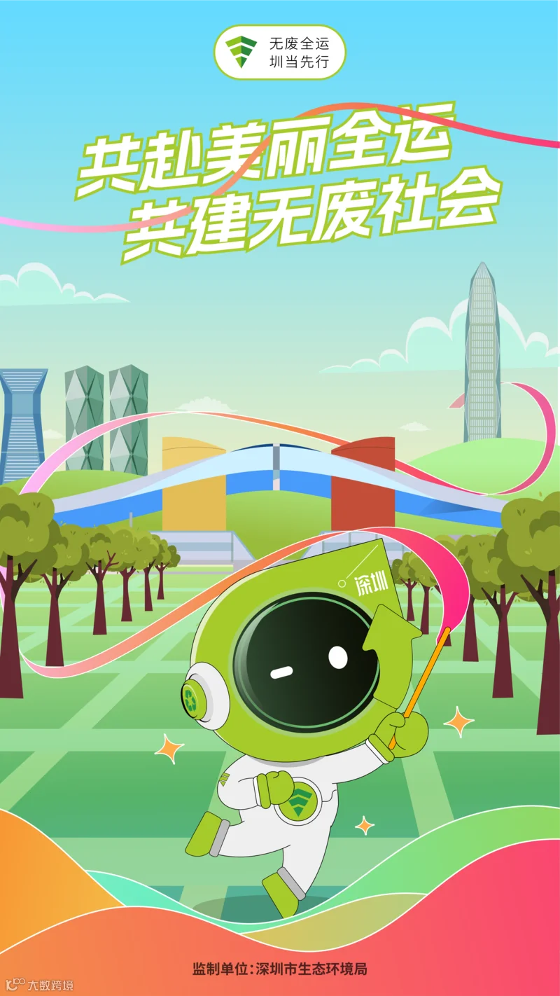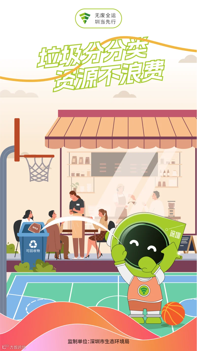 海报通过“无废”场景中富含趣味性的“深无废”ip运动画面,展示深圳“无废城市”的工作成果与方向,呼吁市民在迎接全运的同时,践行绿色生活,积极参与到深圳无废城市建设当中。