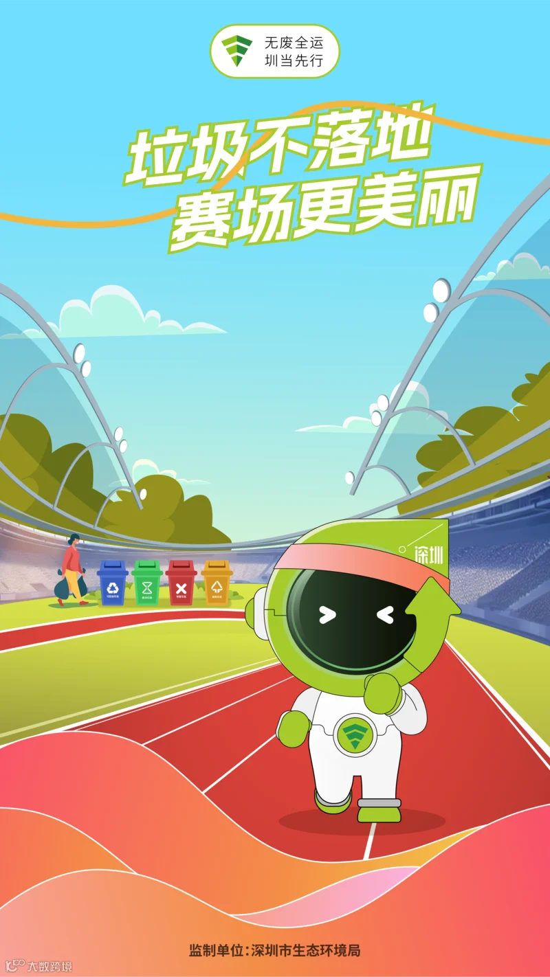 全运在湾区,无废看深圳。为更好迎接第十五届全国运动会,推进“无废文化”宣传,呈现全市统筹城市发展与固体废物管理,推动绿色发展和绿色生活,奋力打造超大型城市固废治理“深圳样板”的新面貌,深圳市生态环境局以“无废全运,圳当先行”为主题,创意策划“无废全运”主题系列海报,“深无废”IP运动形象带领市民提前感受全运氛围。