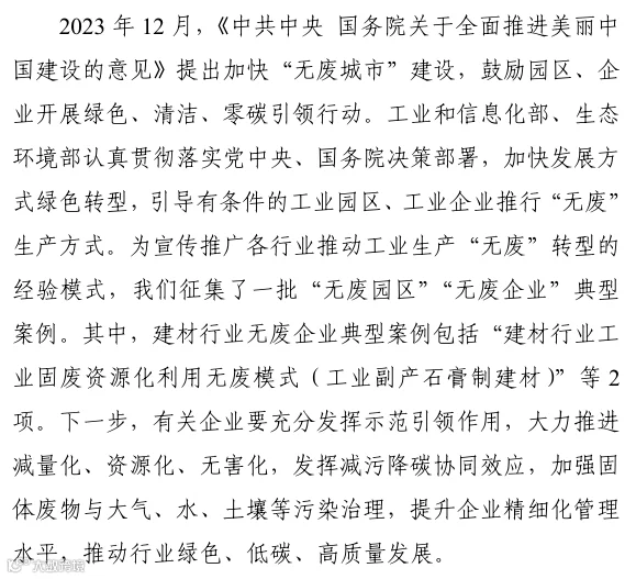 “无废企业”典型案例解读:建材行业“无废企业”典型案例