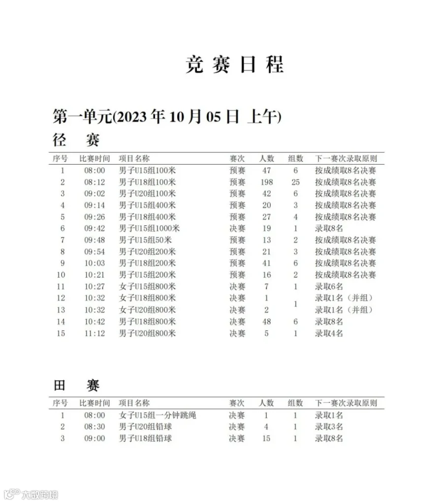 1. 田赛项目:于比赛时间提前30分钟检录;