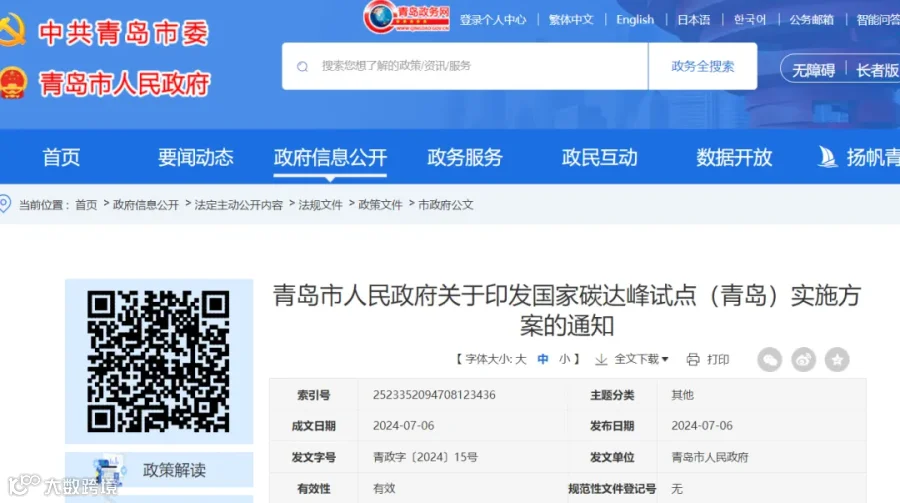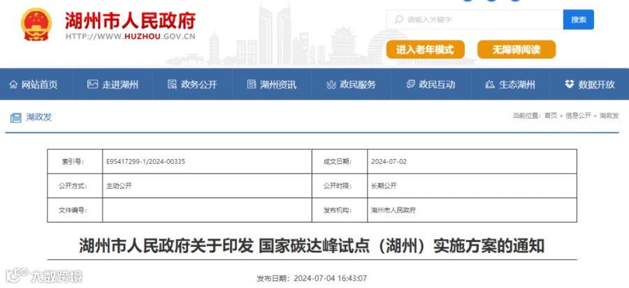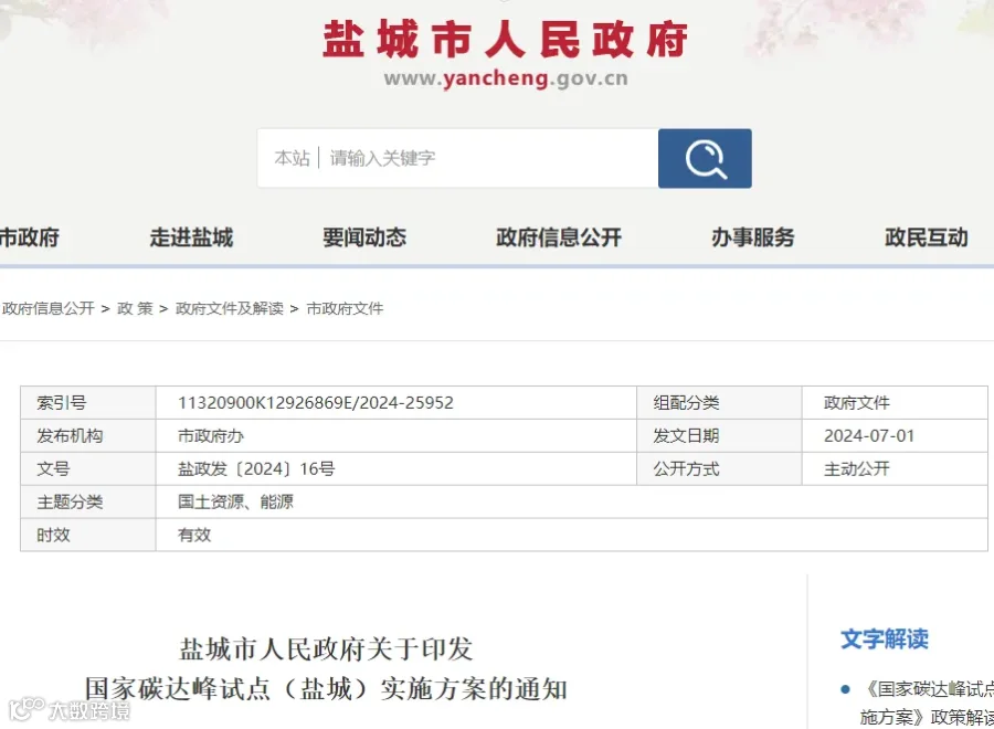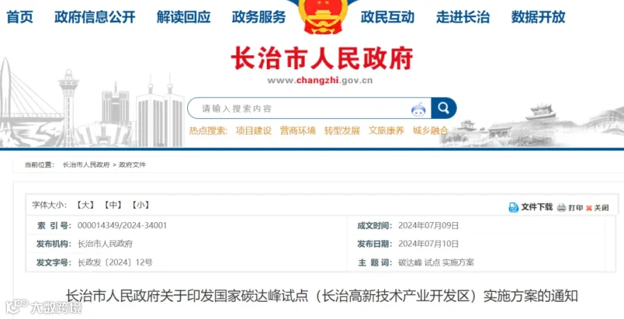 长治市人民政府7月10日发布《国家碳达峰试点(长治高新技术产业开发区)实施方案》(长政发〔2024〕12号),