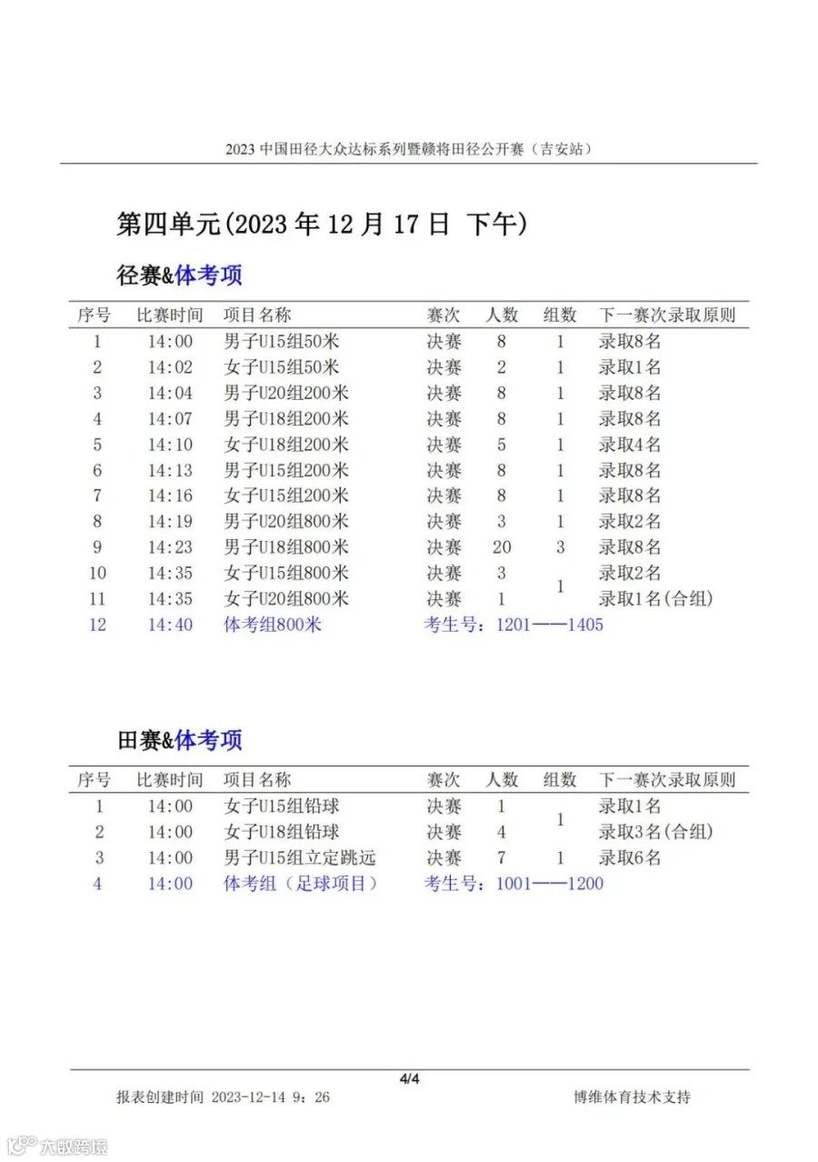热烈欢迎广大田径爱好者参加2023中国田径大众达标系列赛暨赣将田径公开赛(吉安站),因运动员属个人报名参赛,不便召开赛前技术会,现将比赛的技术要求补充通知如下,请参赛运动员悉知。