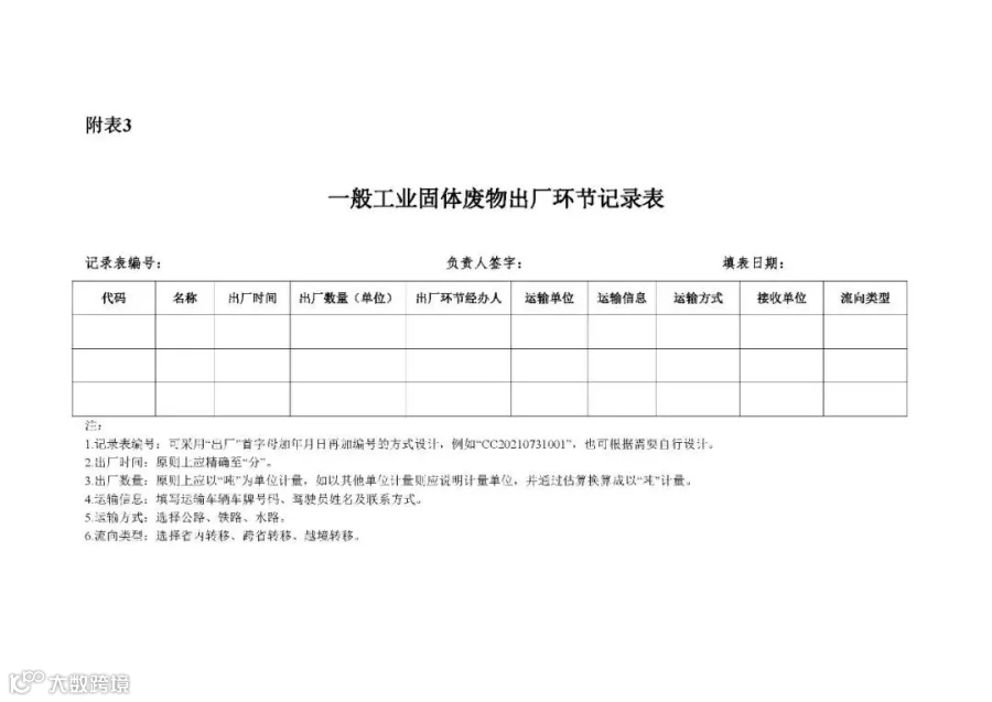 附表 3 按批次填写,每一批次固体废物的出厂以及转移信息均应当如实记录。