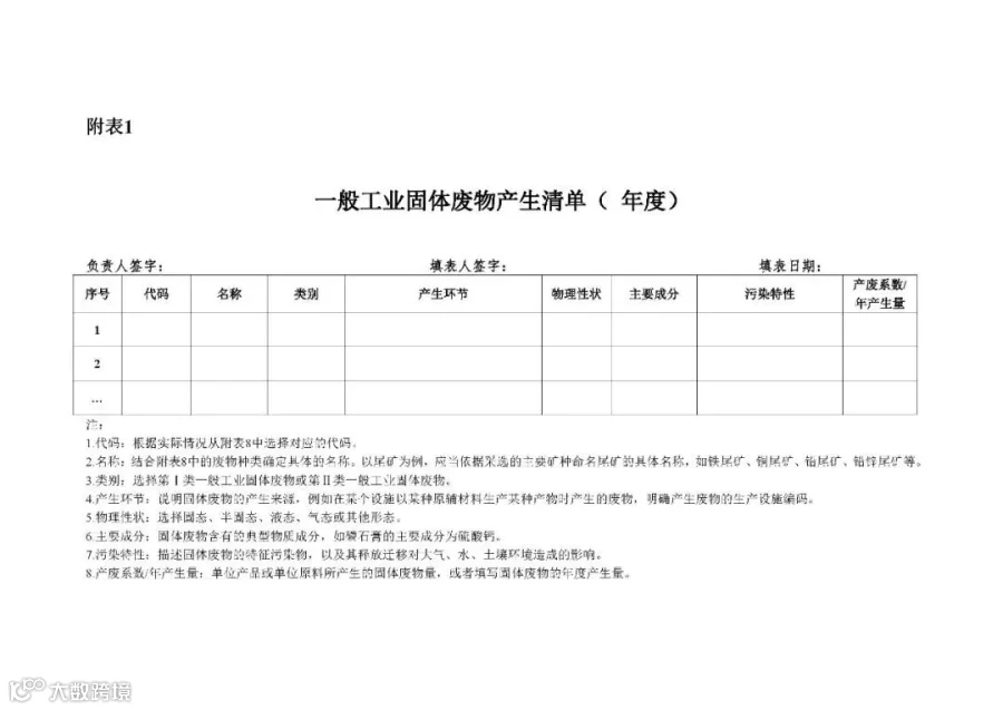 附表 1 按年填写,应当结合环境影响评价、排污许可等材料,根据实际生产运营情况记录固体废物产生信息,生产工艺发生重大变动等原因导致固体废物产生种类等发生变化的,应当及时另行填写附表 1;