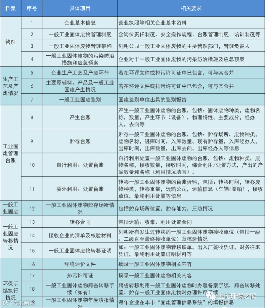 产废单位应结合建设项目环境影响评价、排污许可等文件和自身实际运营情况,从生产工艺、污染治理、事故应急、设备检修、场地清理、原辅材料、产品库存等各方面全面梳理明确一般工业固体废物的产生情况、理化特性和利用处置情况,科学制定覆盖一般工业固体废物所有种类的年度管理计划,并建立一般工业固体废物规范化管理档案。
