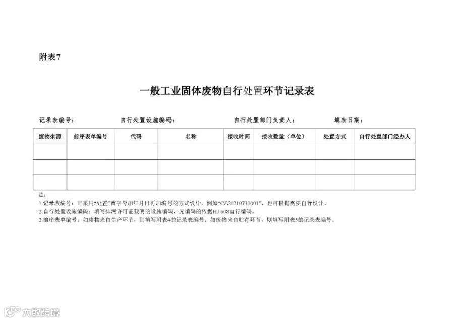 (二)附表 4 至附表 7 为选填信息,主要用于记录固体废物在产废单位内部的贮存、利用、处置等信息。