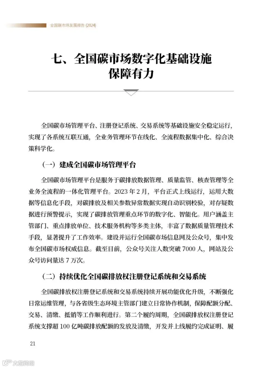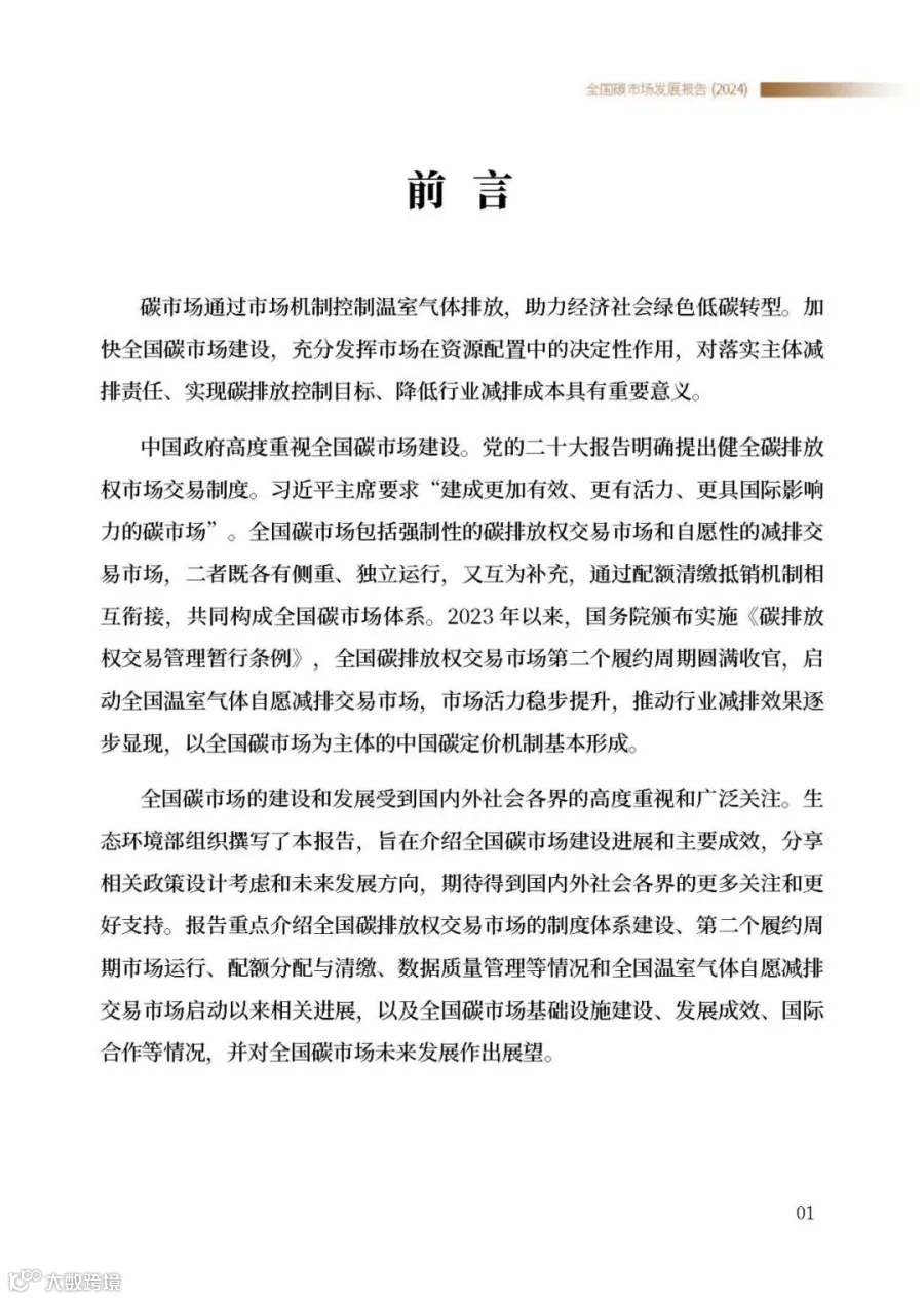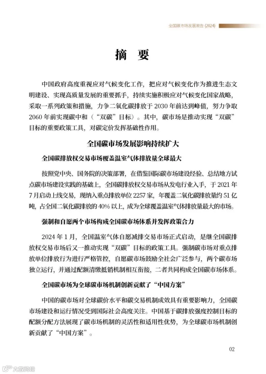 为促进社会各界更好了解全国碳市场发展情况,生态环境部组织编制了《全国碳市场发展报告(2024)》,并于7月21日在武汉“中国碳市场大会2024”上正式发布。