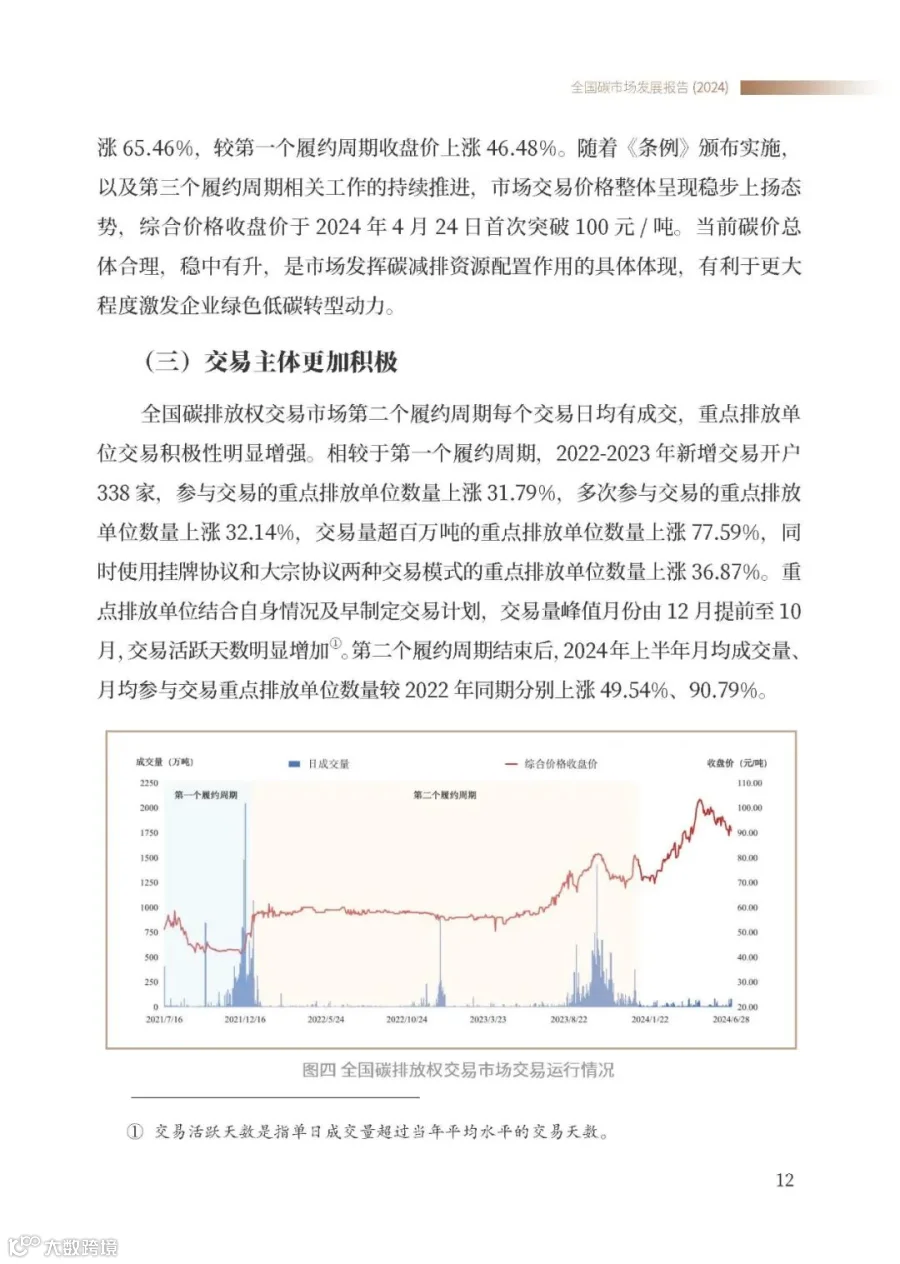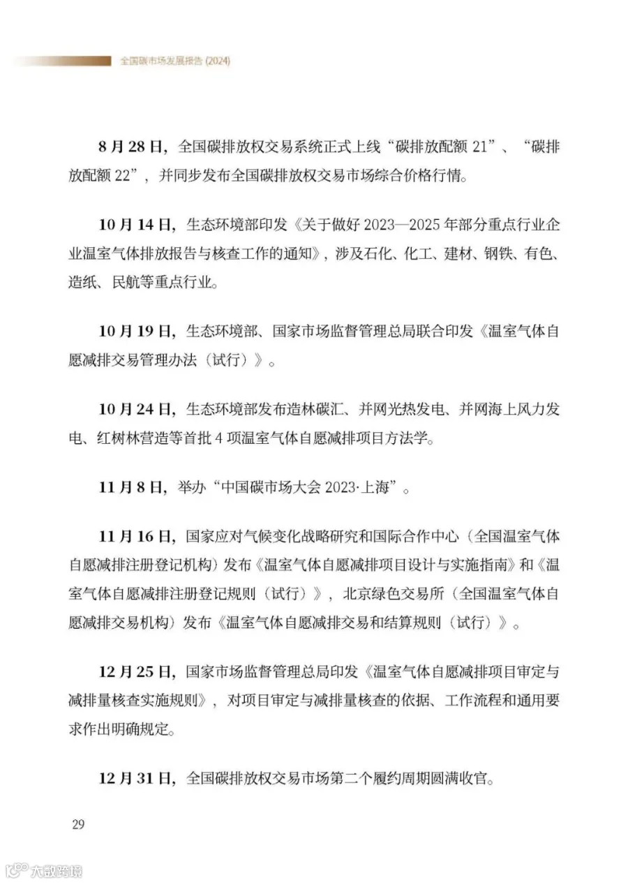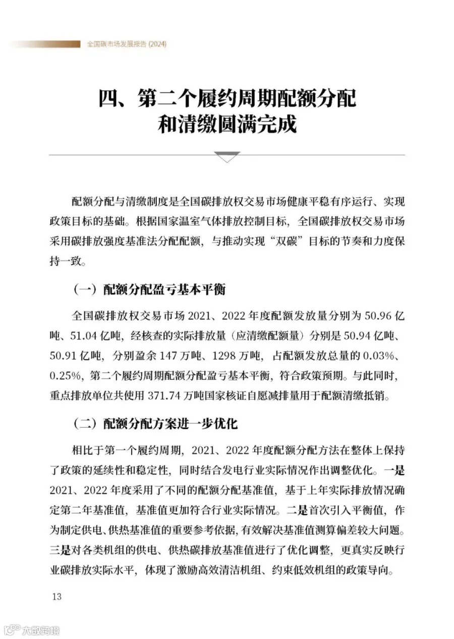 《报告》系统总结了全国碳排放权交易市场和全国温室气体自愿减排交易市场的最新建设进展,全方位展示了市场建设运行工作成效,展望了全国碳市场未来发展方向,是继2022年《全国碳排放权交易市场第一个履约周期报告》之后,生态环境部发布的全国碳市场最新进展情况报告。