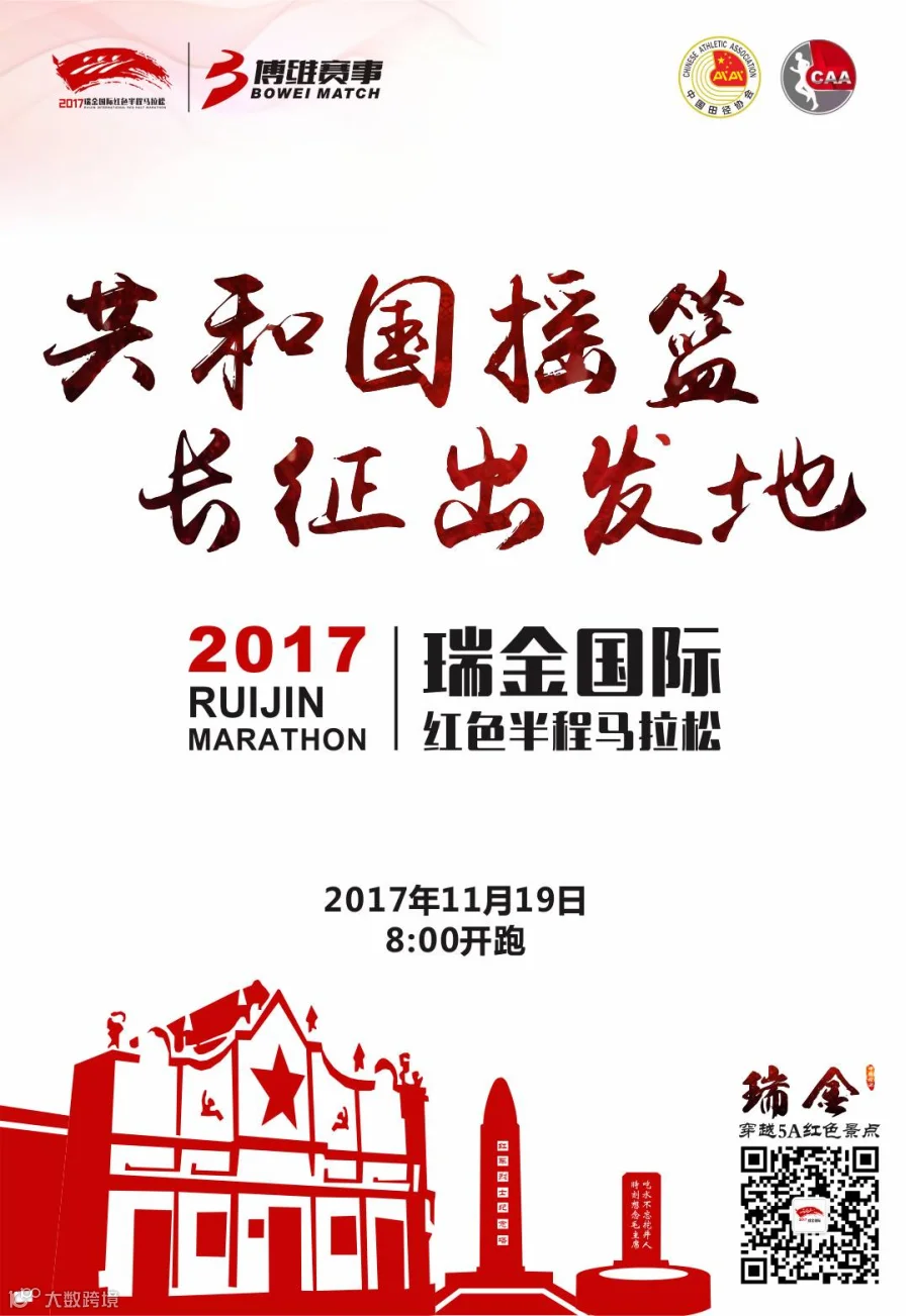 2017瑞金国际红色半程马拉松为中国马拉松A类认证赛事,由中国田径协会、中共瑞金市委、瑞金市人民政府共同主办。