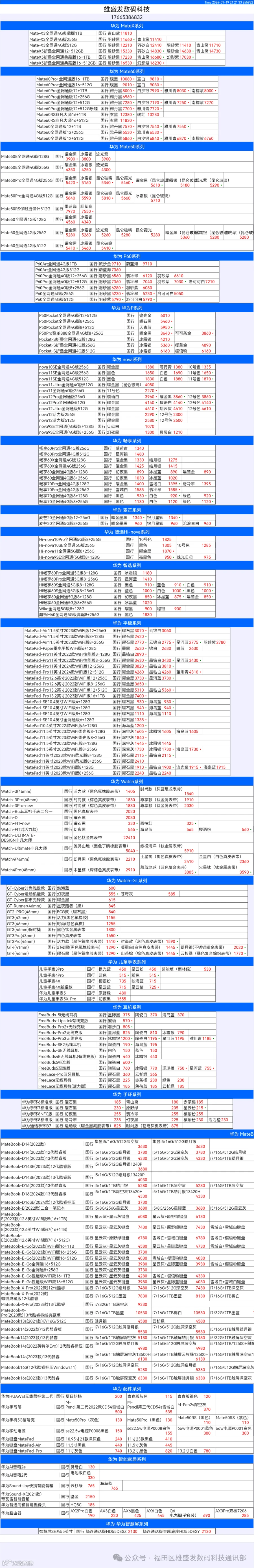 新机报价【2024年1月19日】华为   荣耀 报价 芯烨微 电子科技