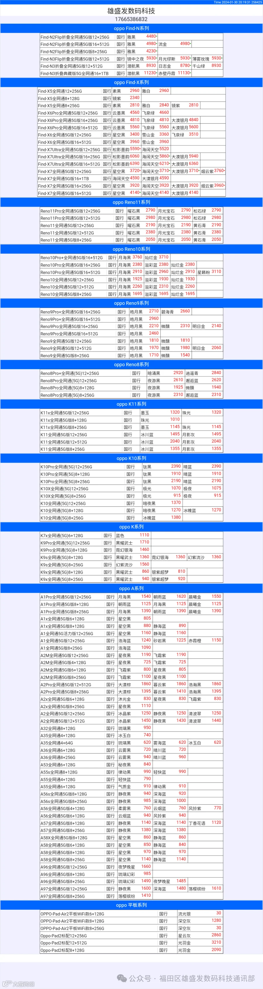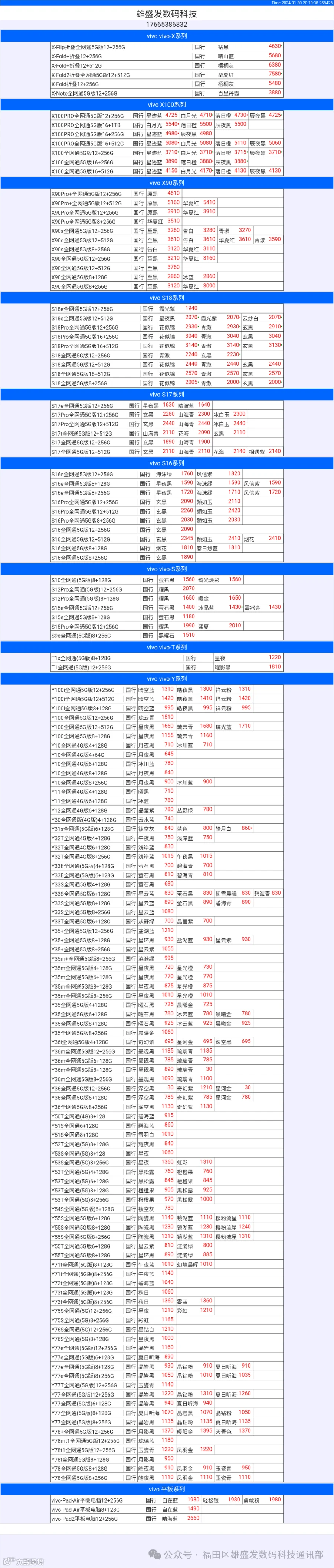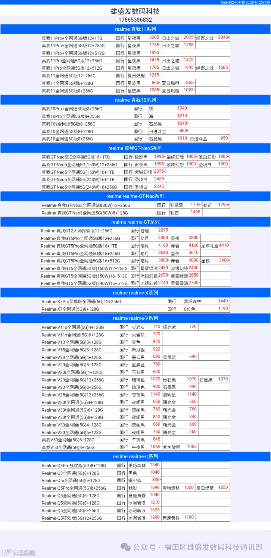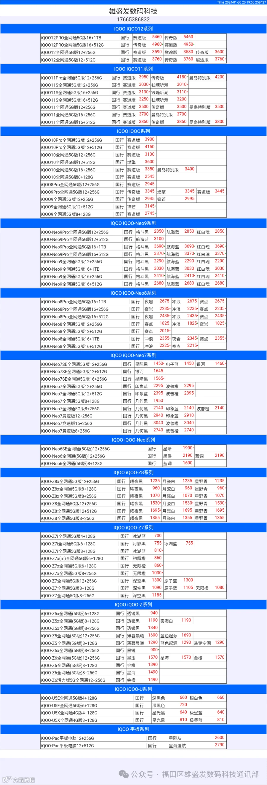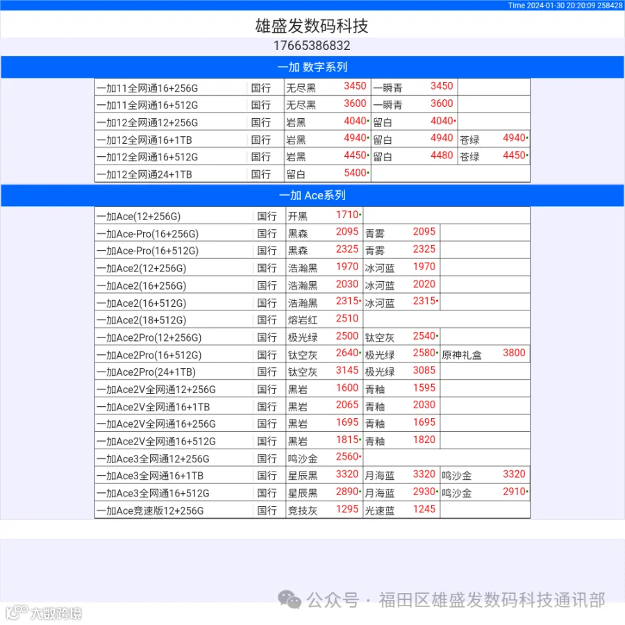 新机报价【2024年1月30日】OPPO   VIVO  IQOO   一加   真我 芯烨微 电子科技