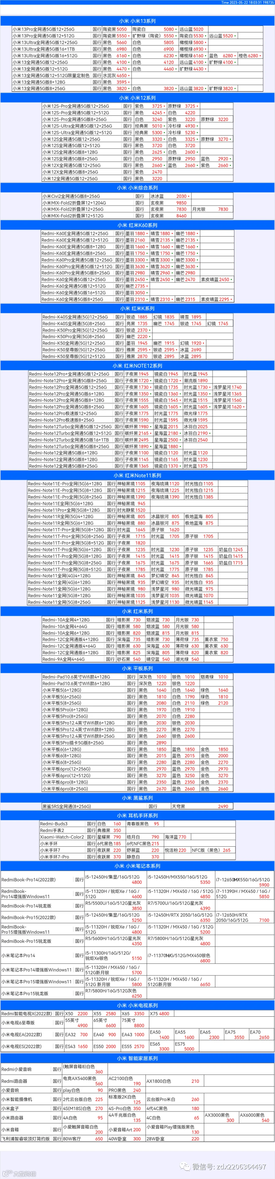 新机报价【2023年5月22日】小米  红米   黑鲨   报价 芯烨微 电子科技