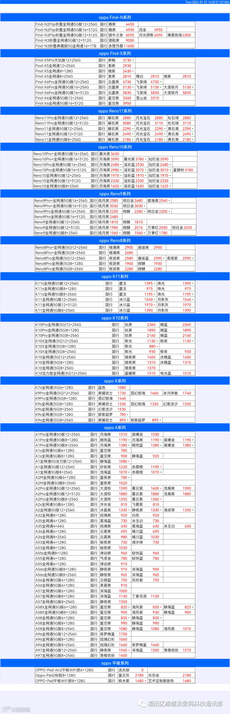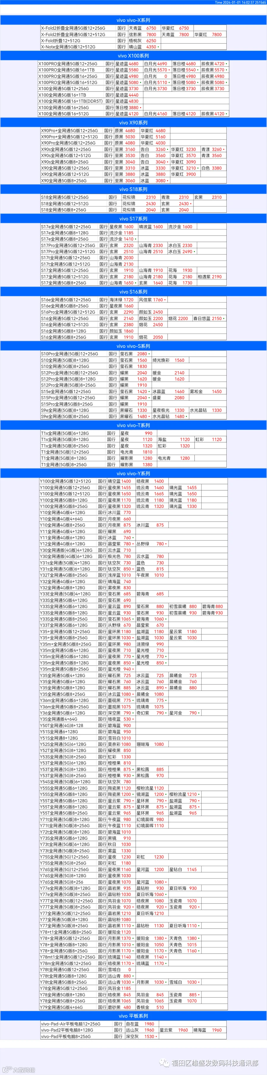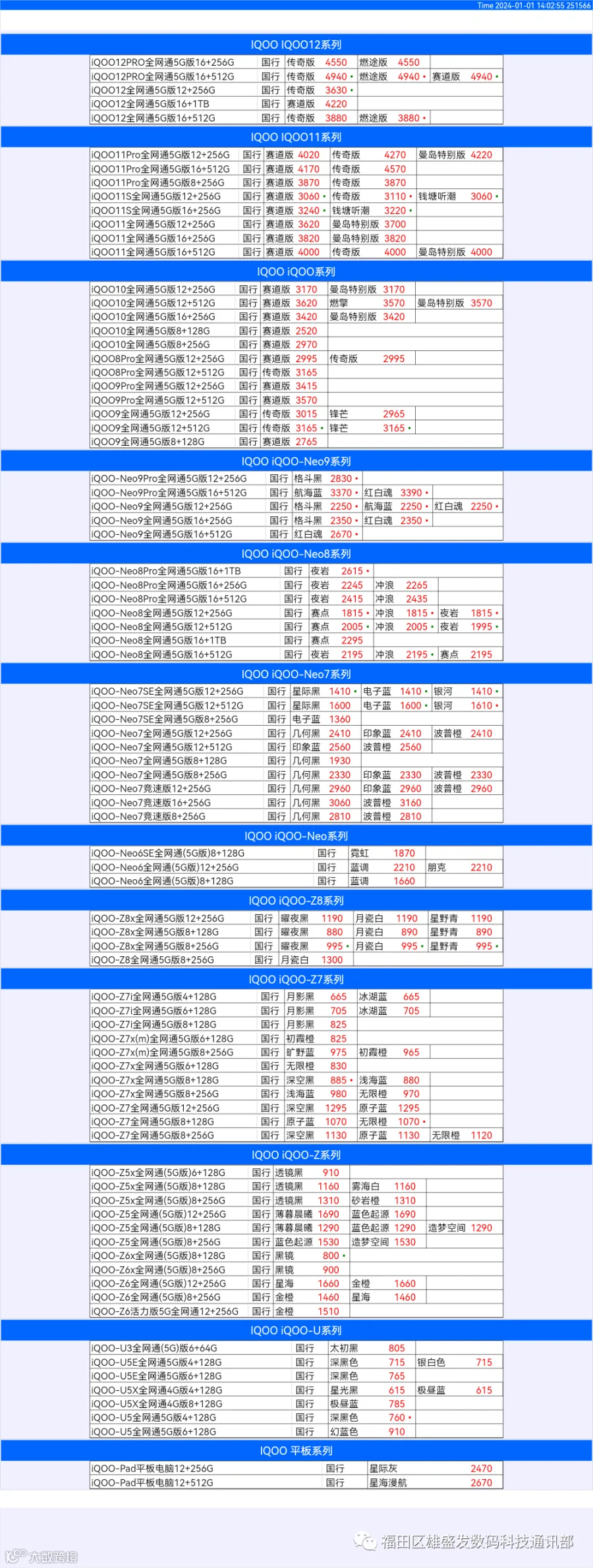 新机报价【2024年1月1日】OPPO   VIVO  IQOO   一加   真我 芯烨微 电子科技