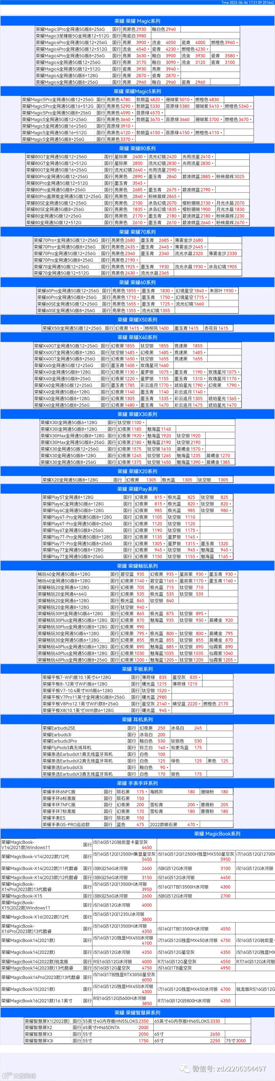 新机报价【2023年6月4日】华为   荣耀 报价 芯烨微 电子科技