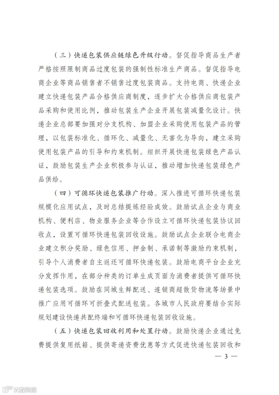 《方案》明确,开展快递包装供应链绿色升级行动。组织开展快递包装绿色产品认证,鼓励包装生产企业积极参与认证,推动增加快递包装绿色产品供给。
