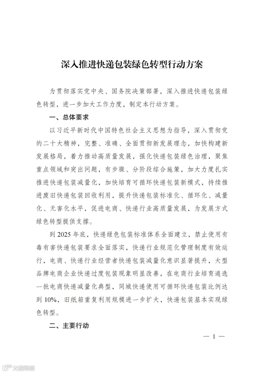 《深入推进快递包装绿色转型行动方案》已经国务院同意,现印发给你们,请认真贯彻执行。