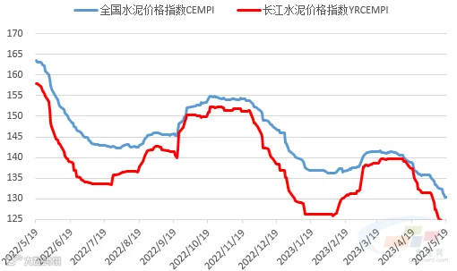 五月中旬全国市场终端需求仍较疲弱,企业库存普遍高位承压,市场竞争激烈,全国水泥价格延续跌势;