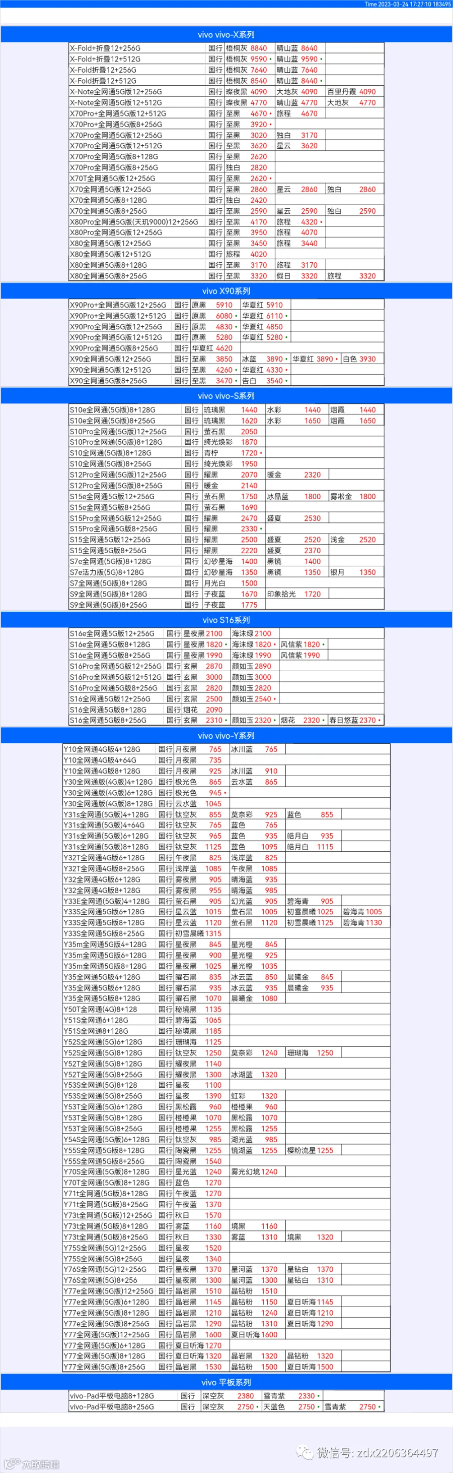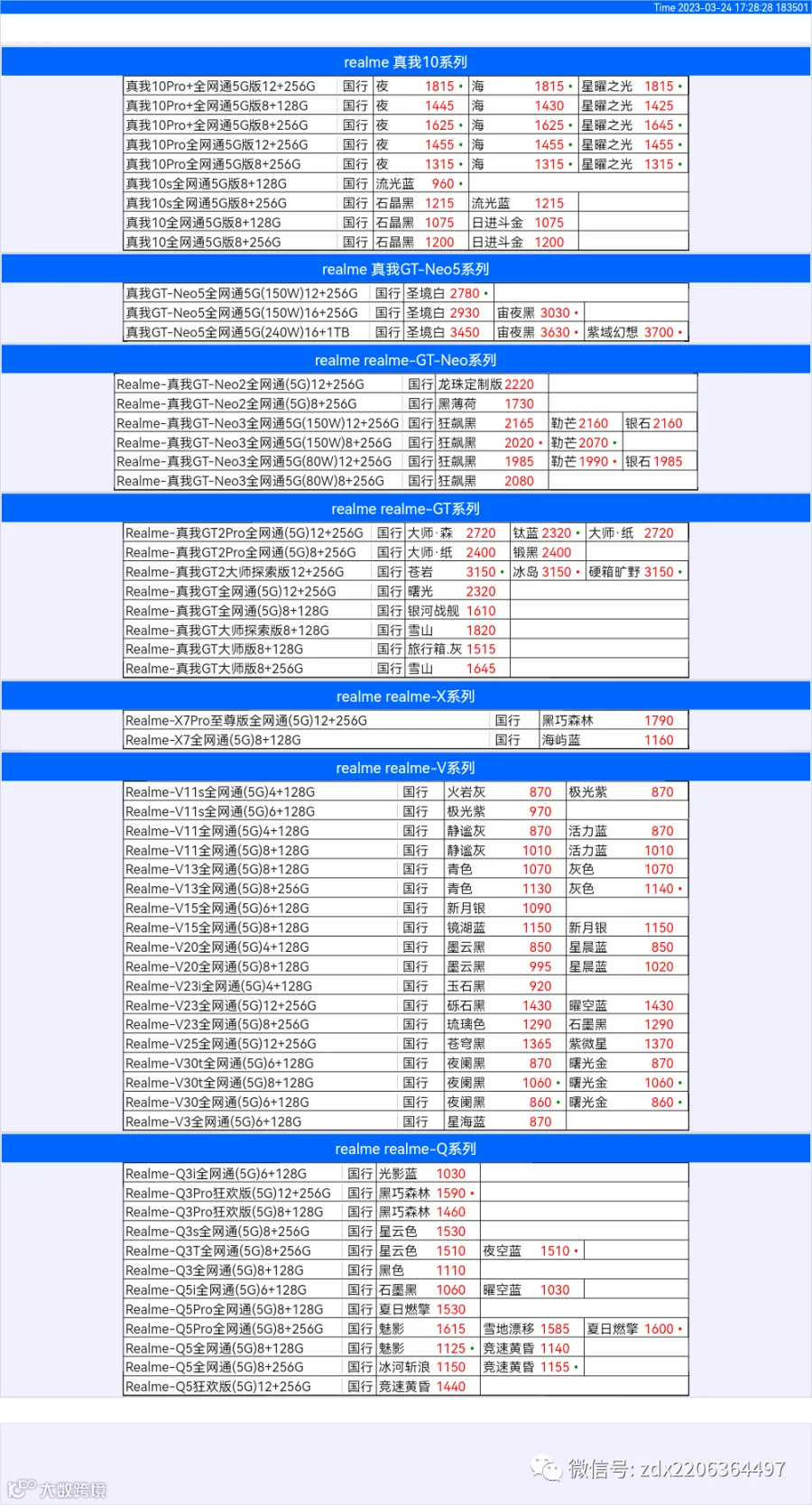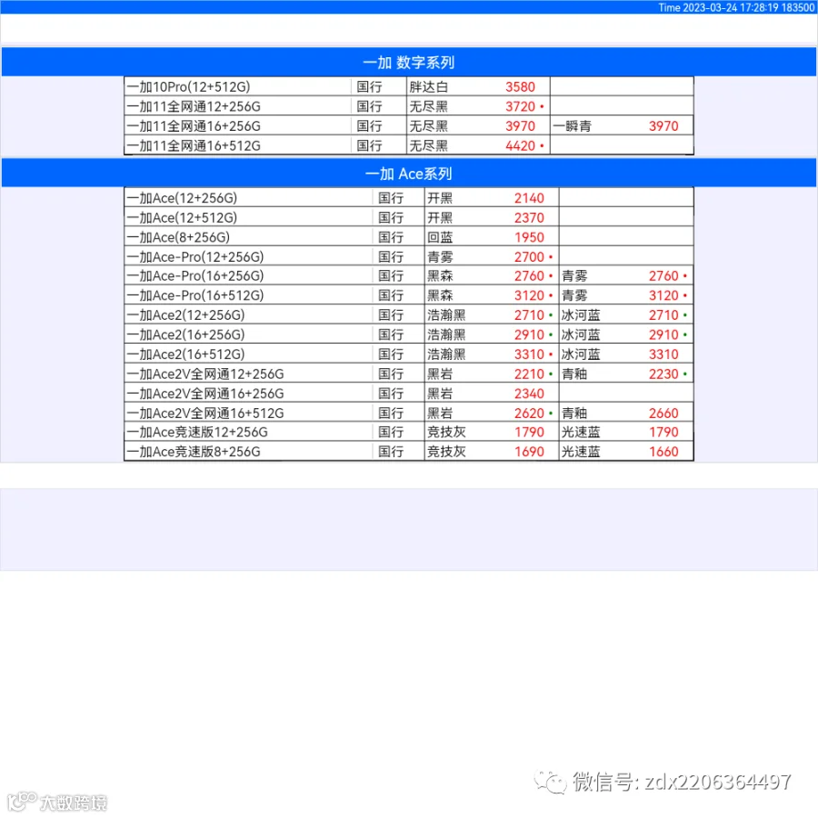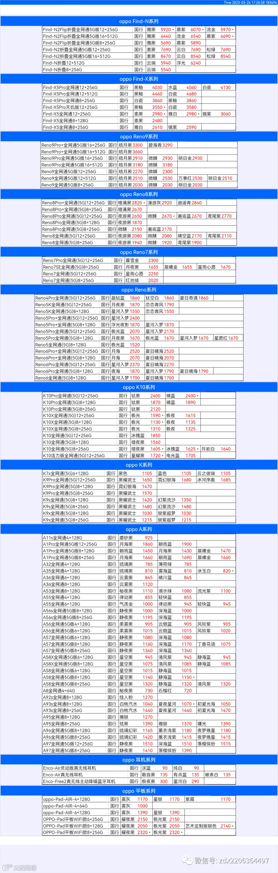 新机报价【2023年3月24日】OPPO   VIVO  IQOO   一加   真我 芯烨微 电子科技