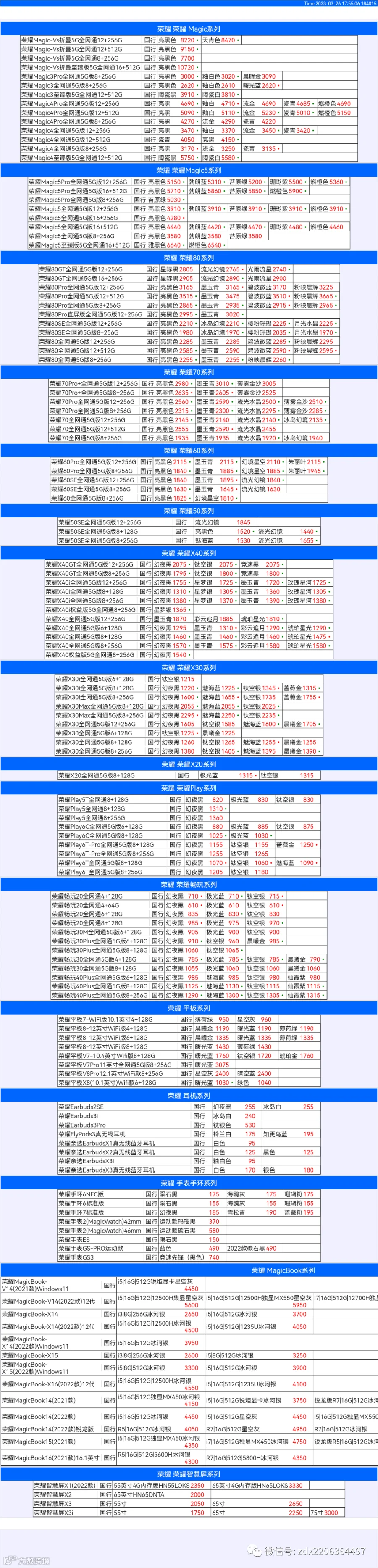 新机报价【2023年3月26日】华为   荣耀 报价 芯烨微 电子科技