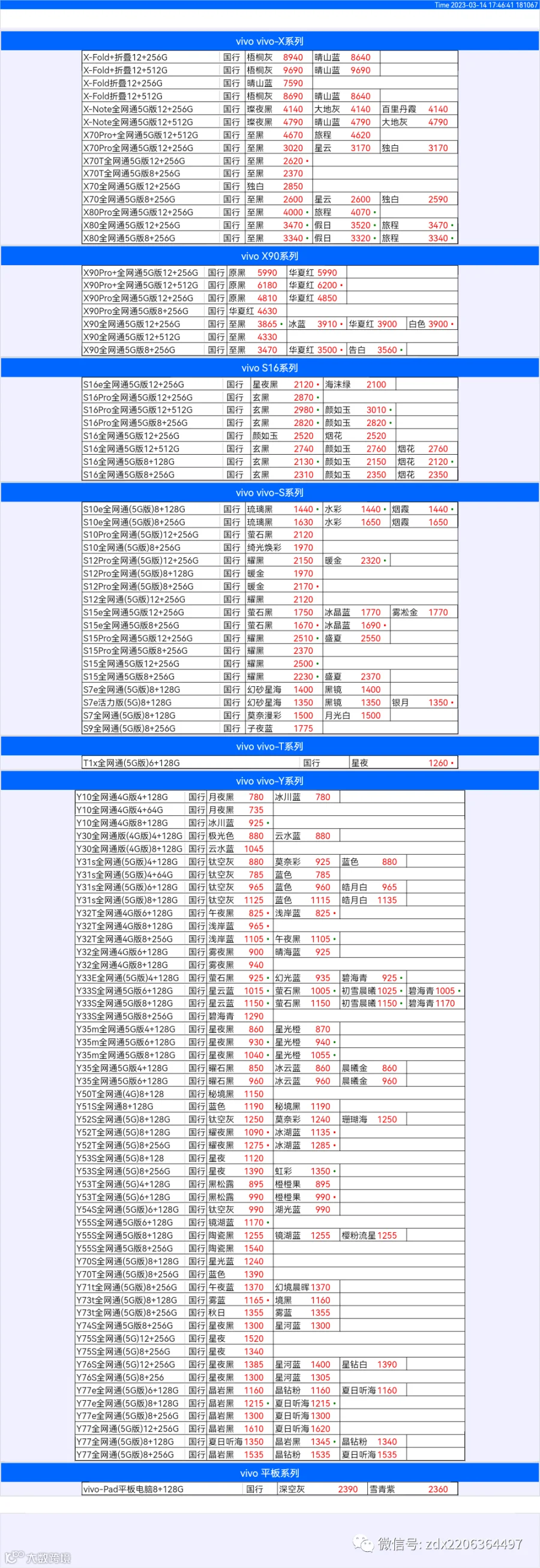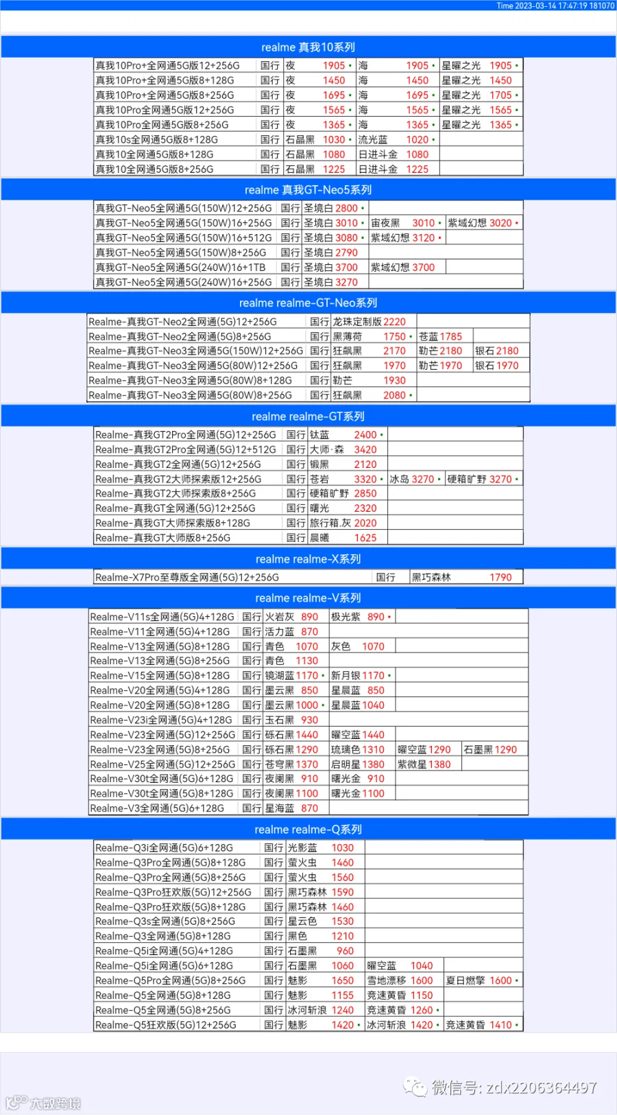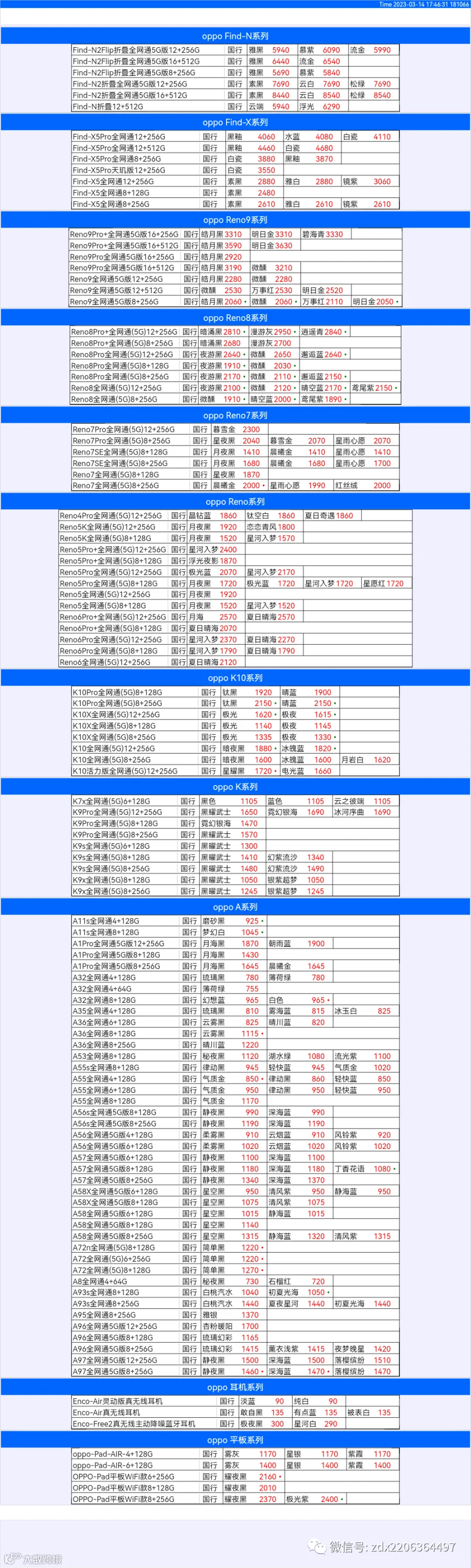 新机报价【2023年3月14日】OPPO   VIVO  IQOO   一加   真我 芯烨微 电子科技