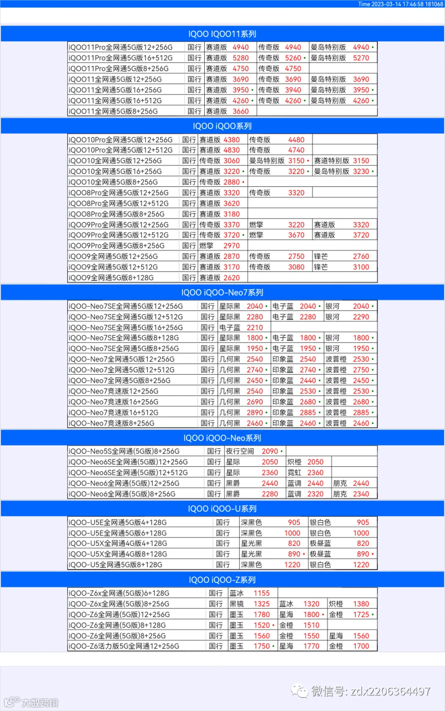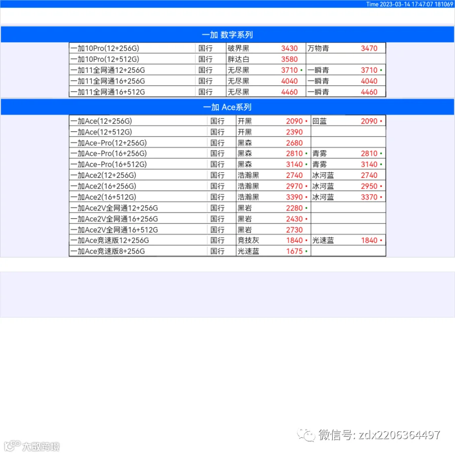 新机报价【2023年3月14日】OPPO VIVO IQOO 一加 真我
