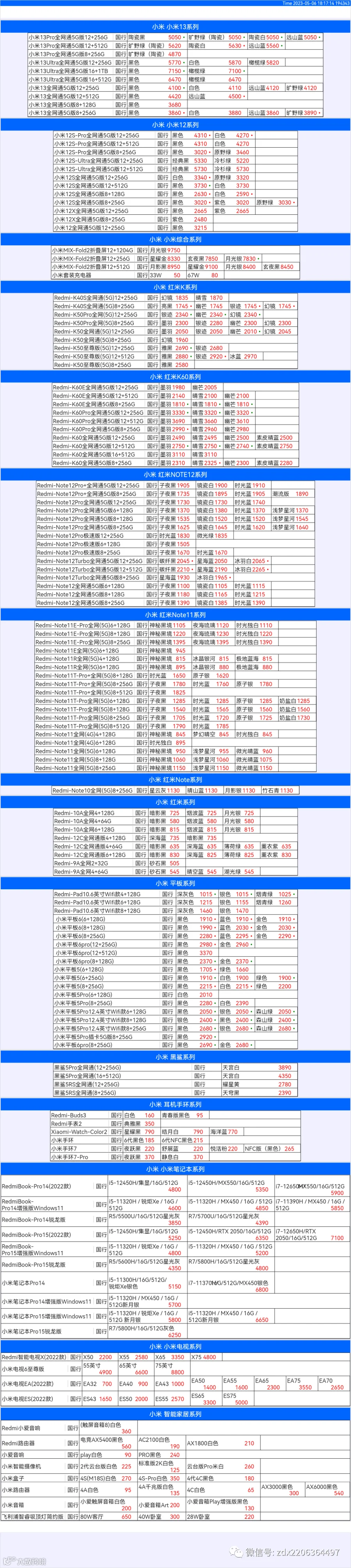新机报价【2023年5月6日】小米  红米   黑鲨   报价 芯烨微 电子科技