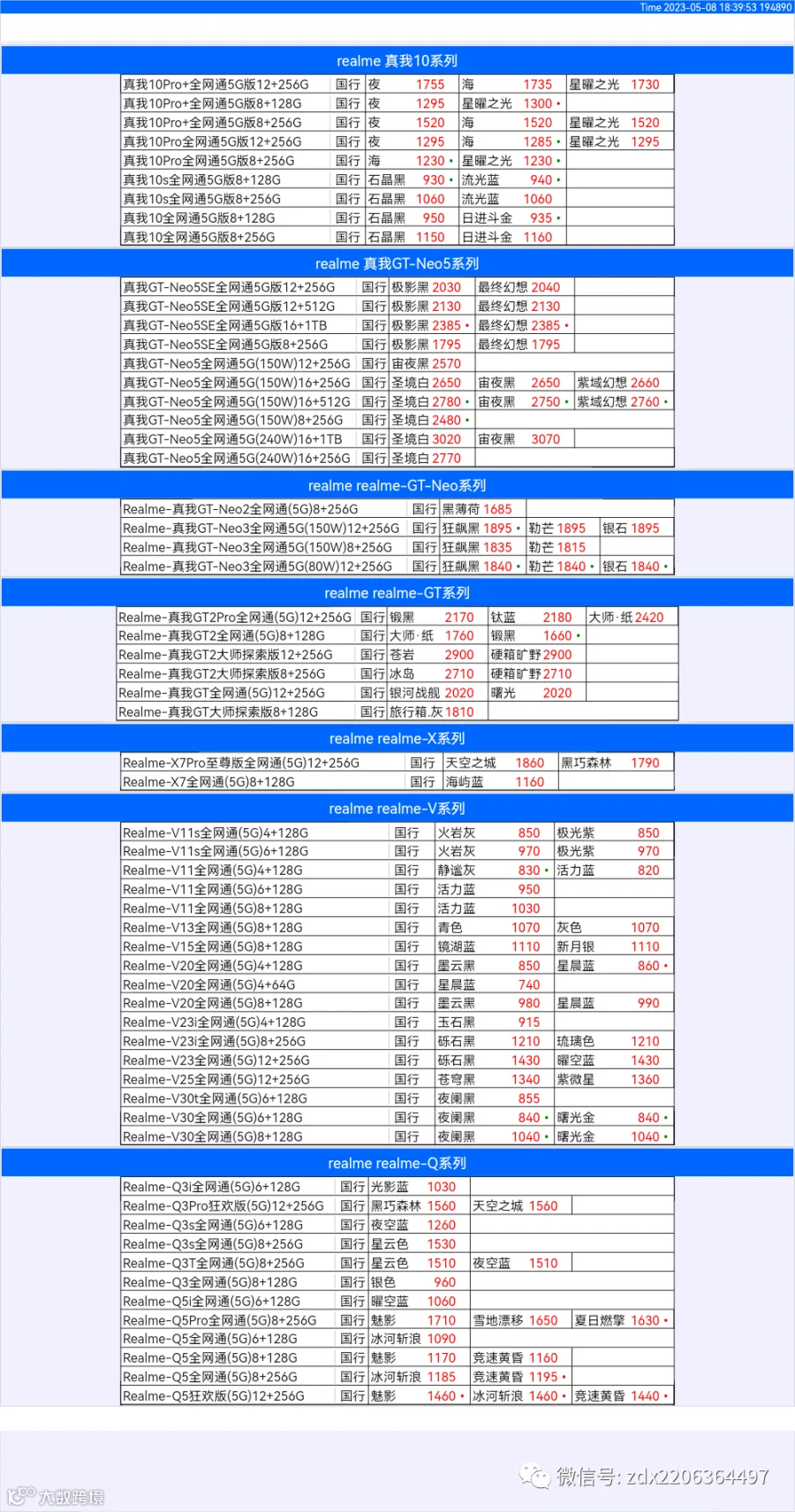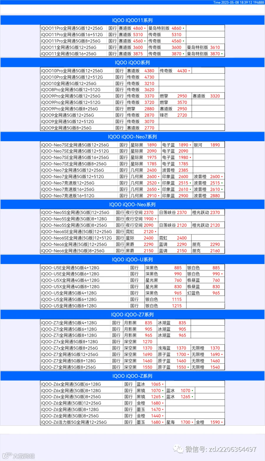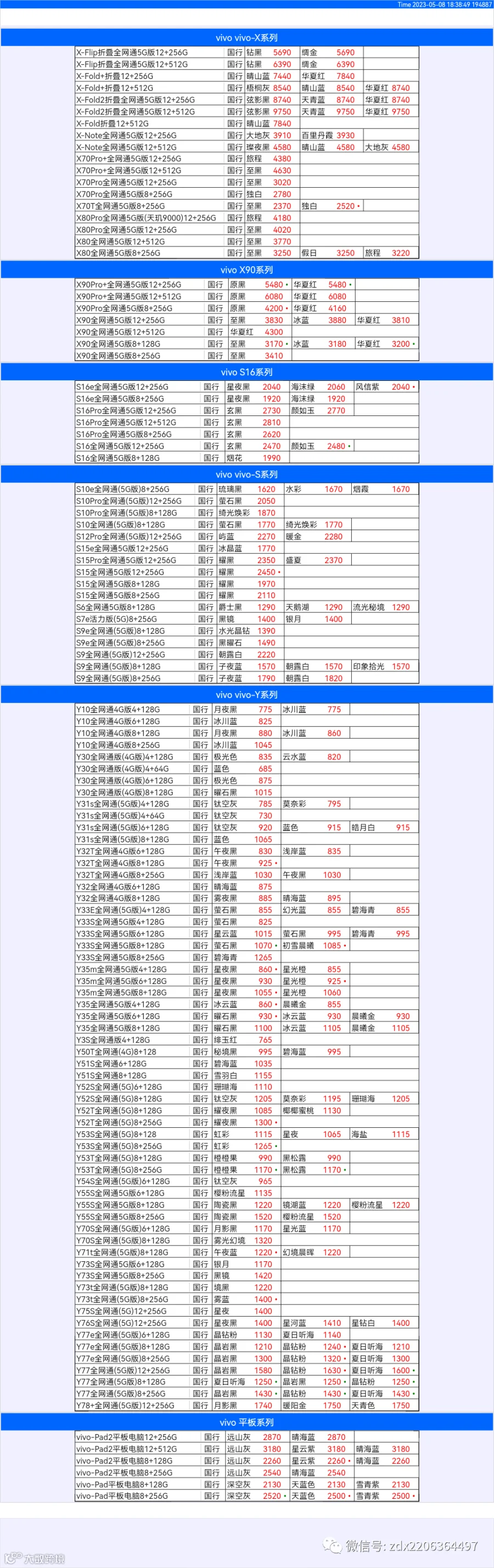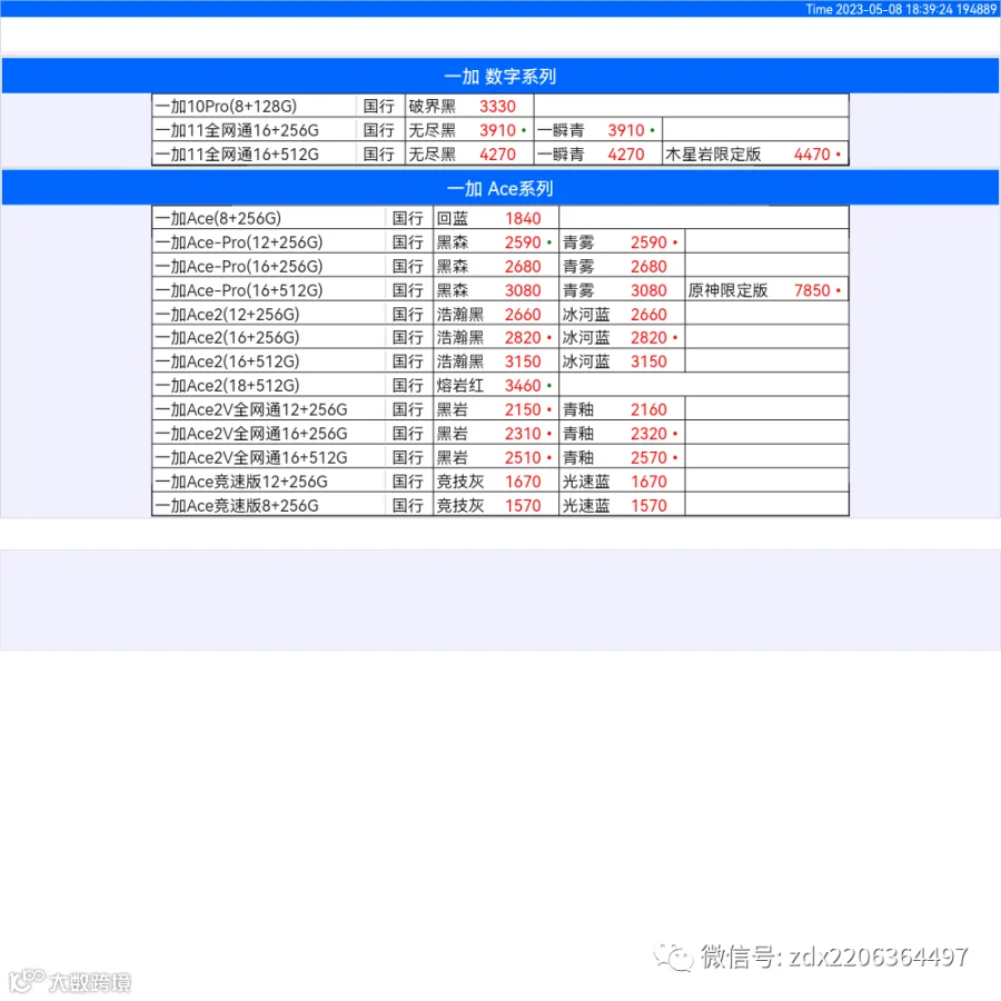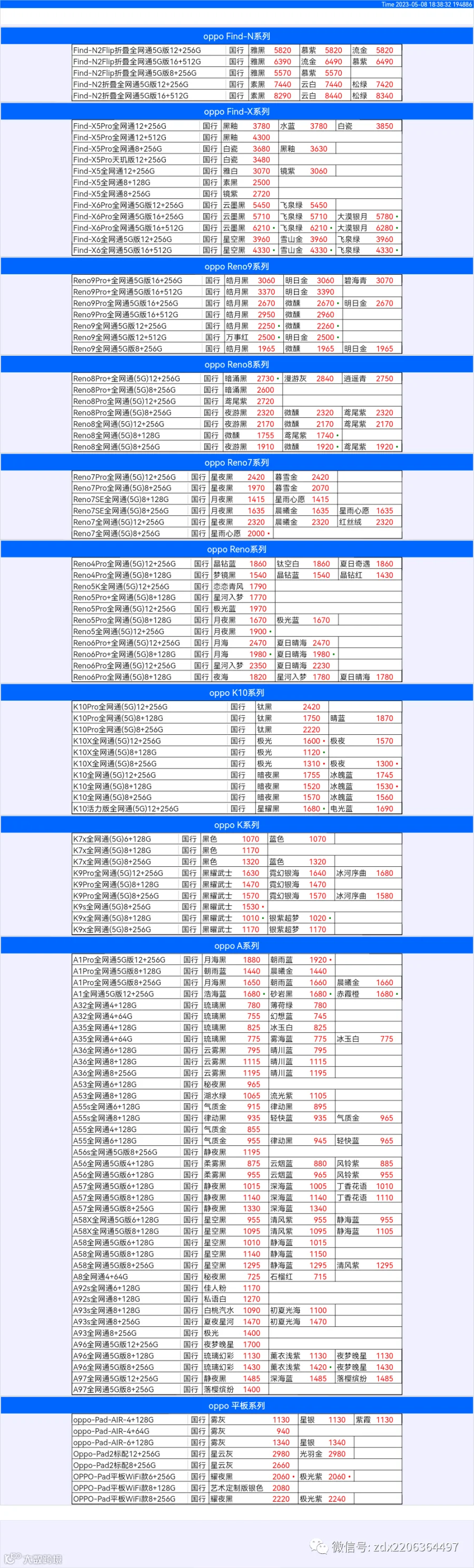 新机报价【2023年5月8日】OPPO   VIVO  IQOO   一加   真我 芯烨微 电子科技