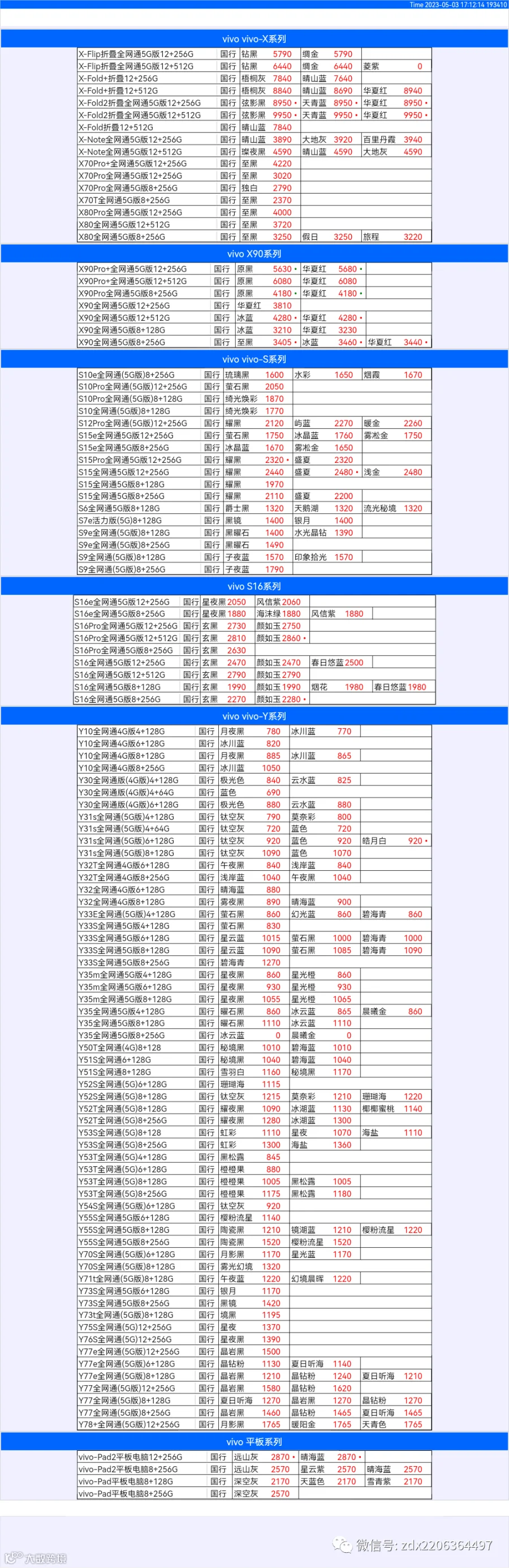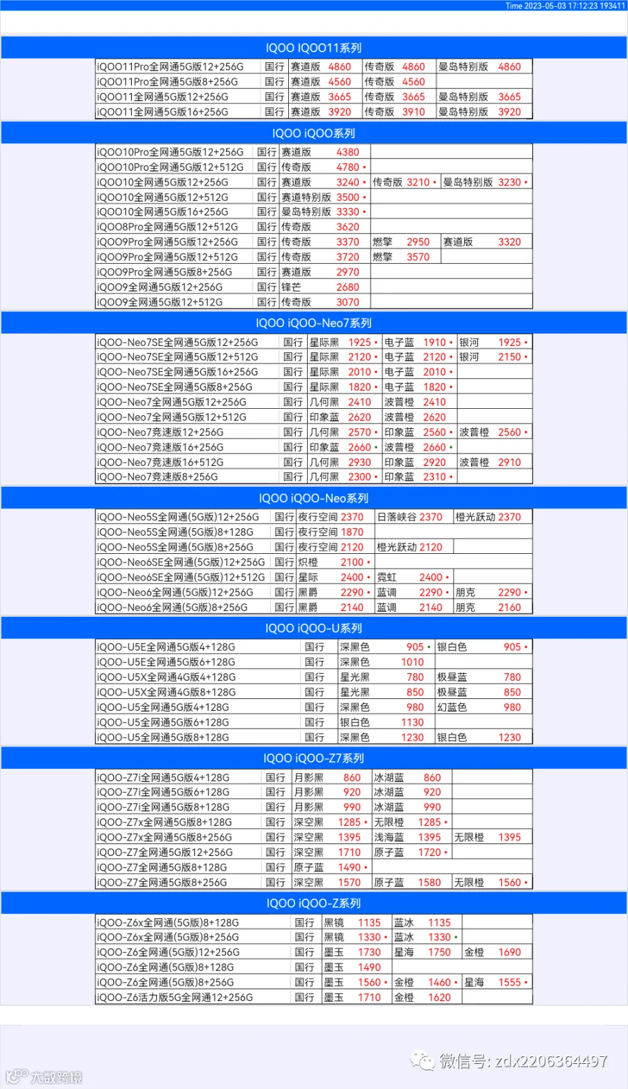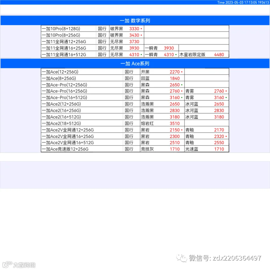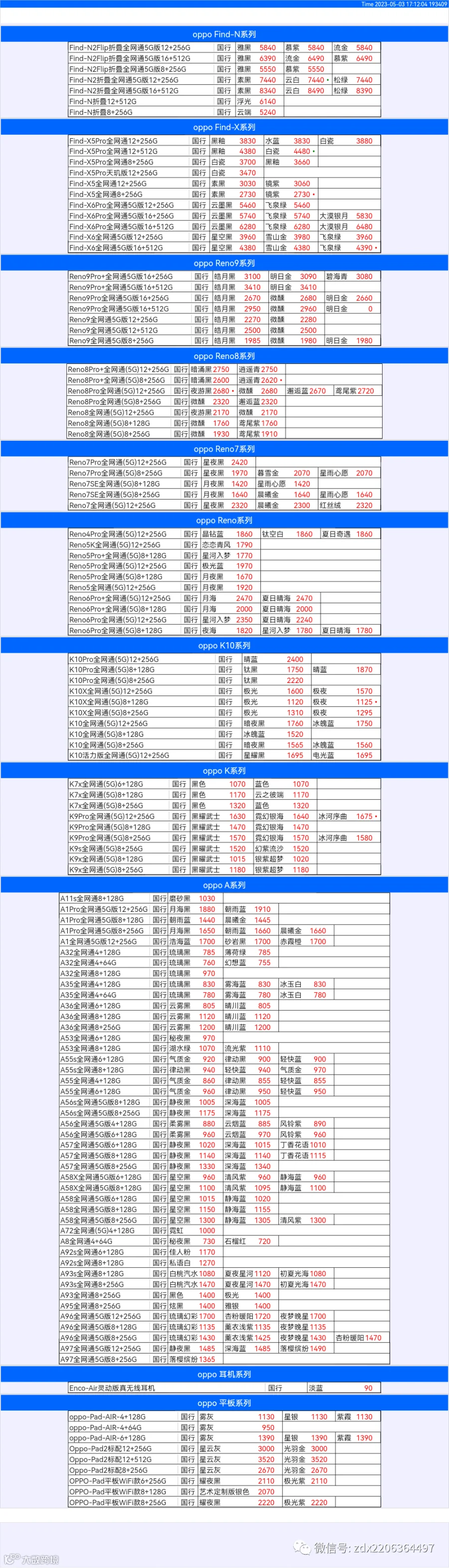 新机报价【2023年5月3日】OPPO   VIVO  IQOO   一加   真我 芯烨微 电子科技