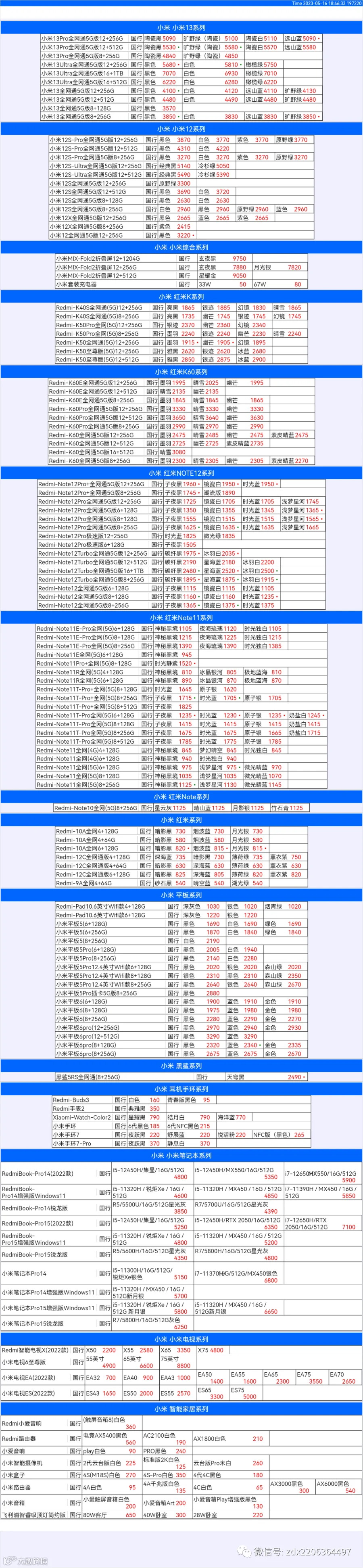新机报价【2023年5月16日】小米  红米   黑鲨   报价 芯烨微 电子科技