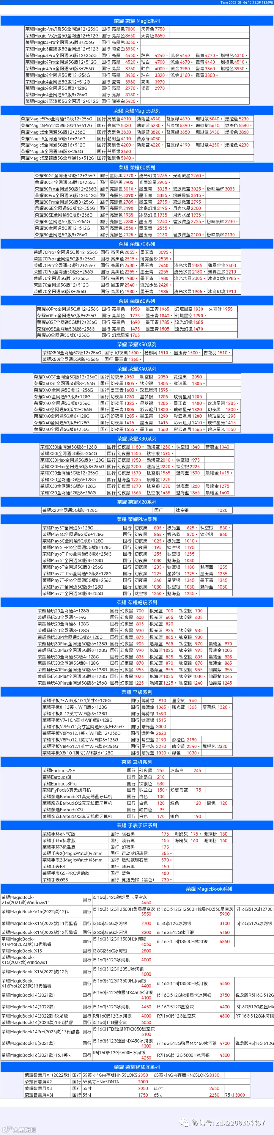 新机报价【2023年5月4日】华为   荣耀 报价 芯烨微 电子科技