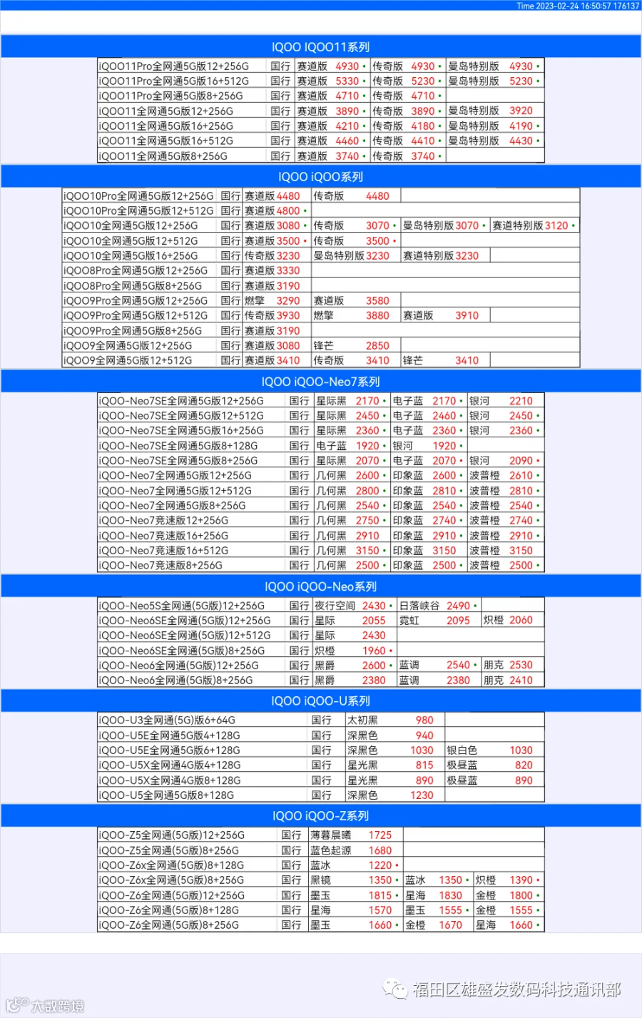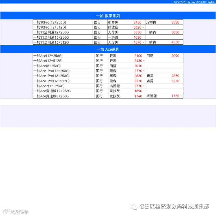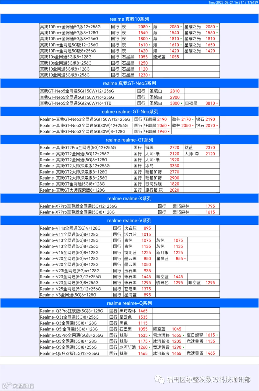 新机报价【2023年2月24日】OPPO VIVO IQOO 一加 真我
