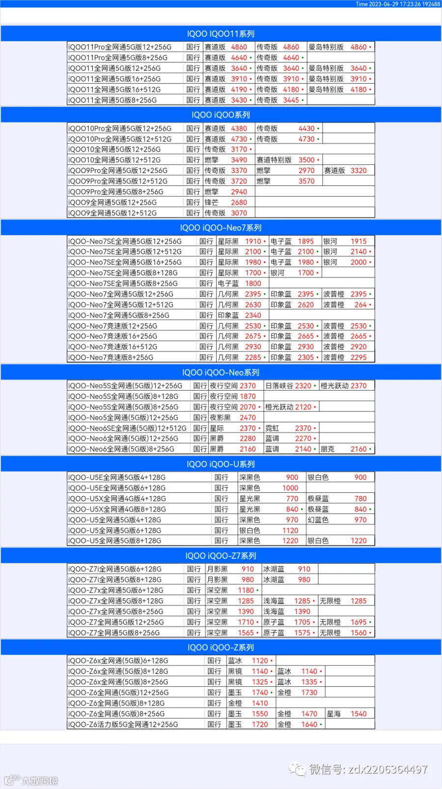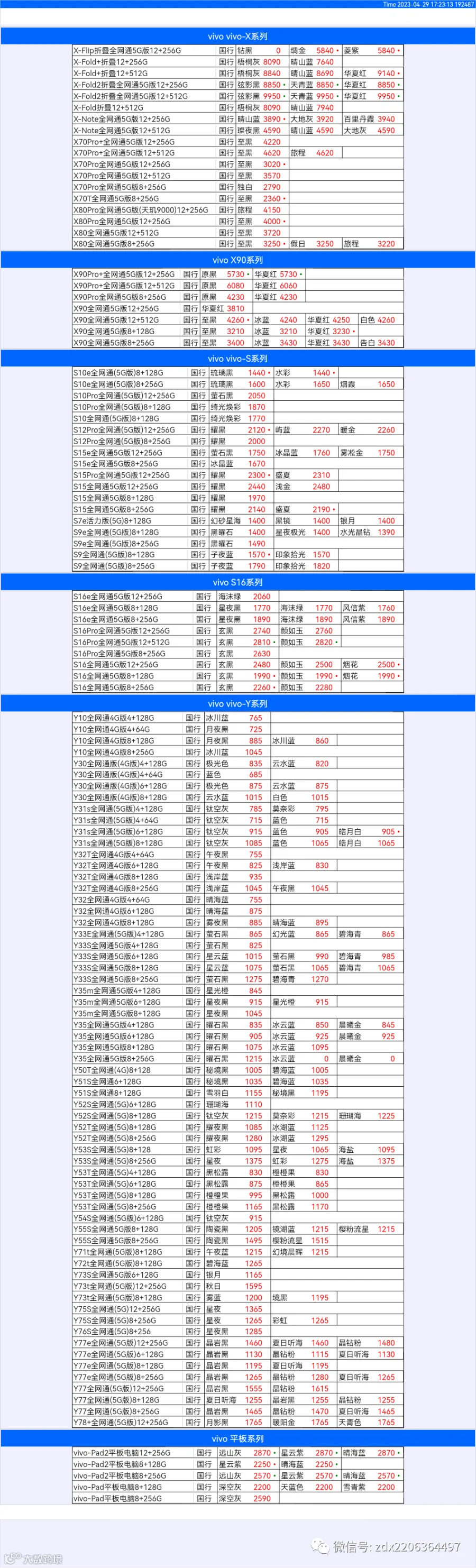 新机报价【2023年4月29日】OPPO   VIVO  IQOO   一加   真我 芯烨微 电子科技