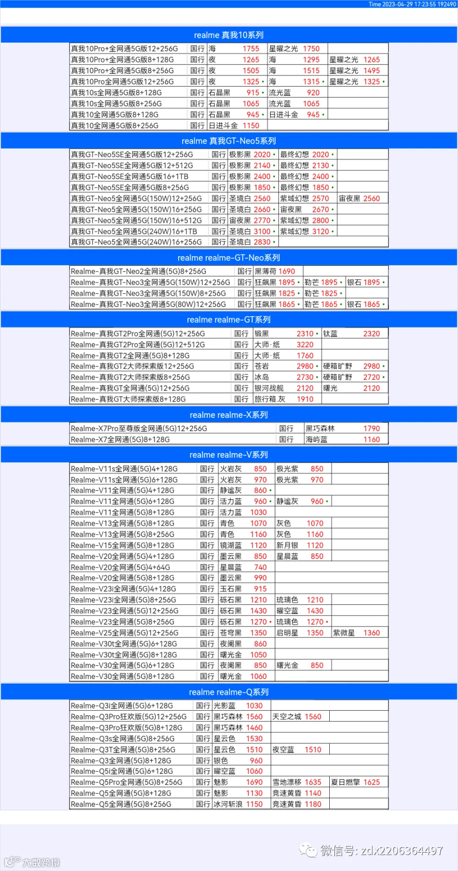 新机报价【2023年4月29日】OPPO VIVO IQOO 一加 真我
